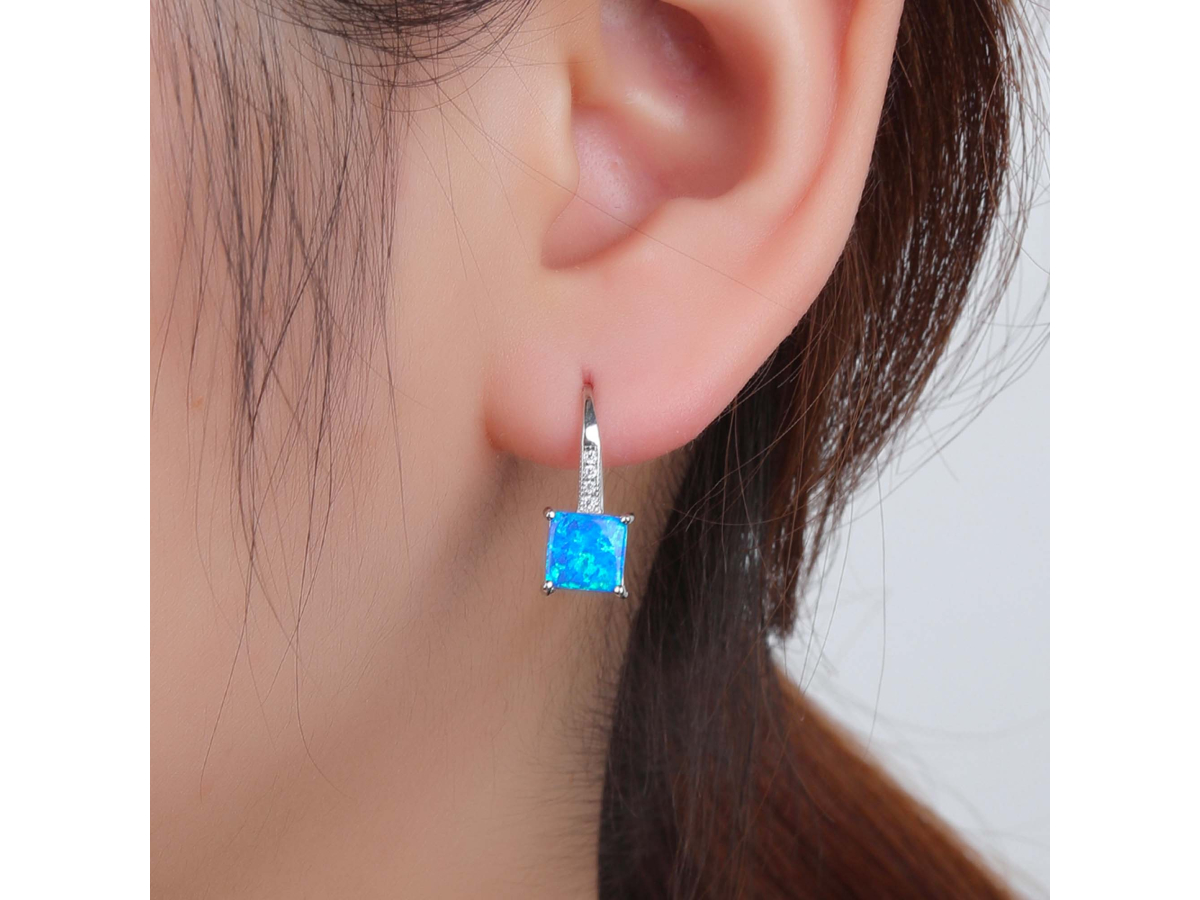 Stříbrné náušnice ZDOBENÉ modrý OPÁL Ag 925/1000