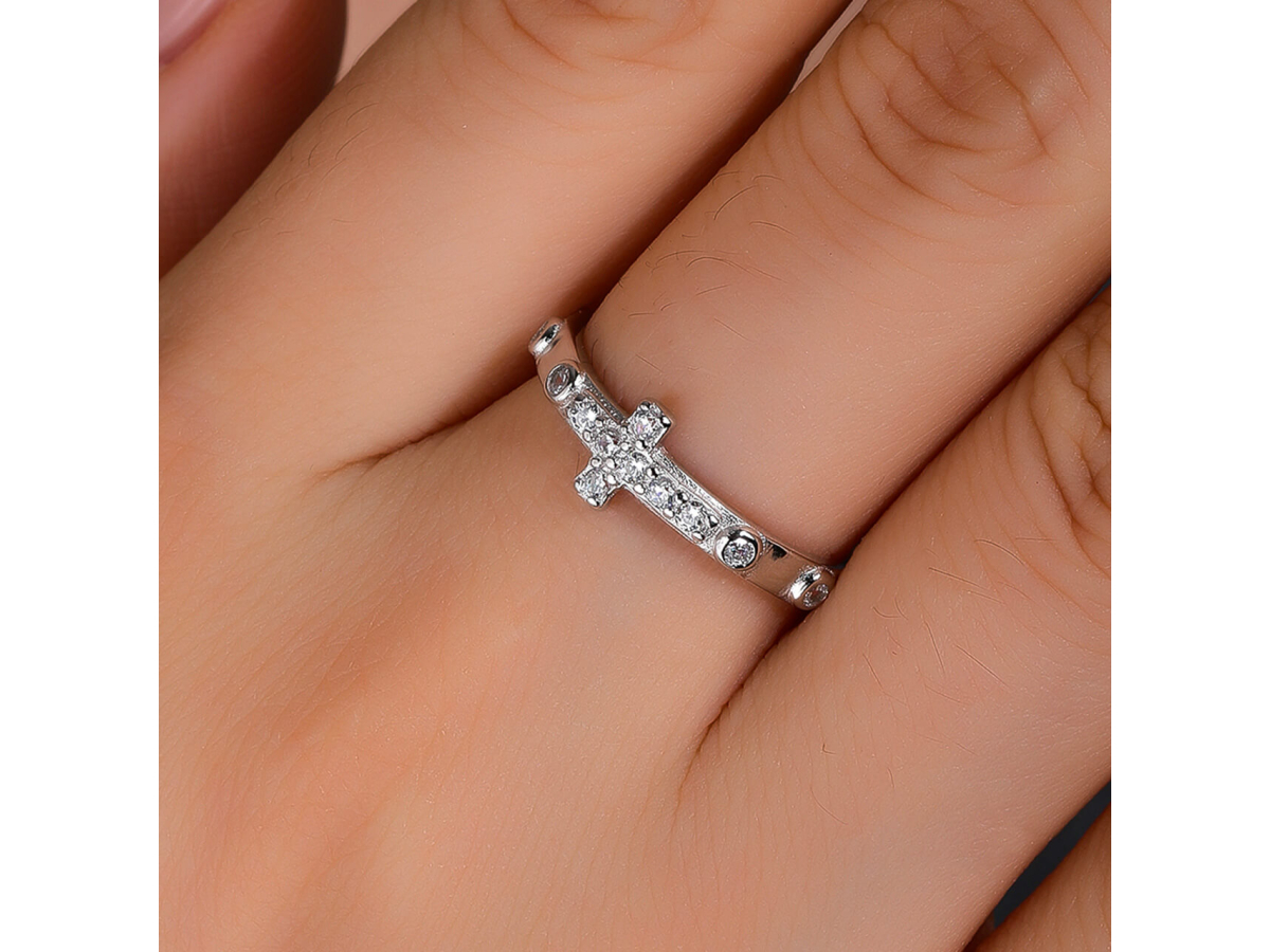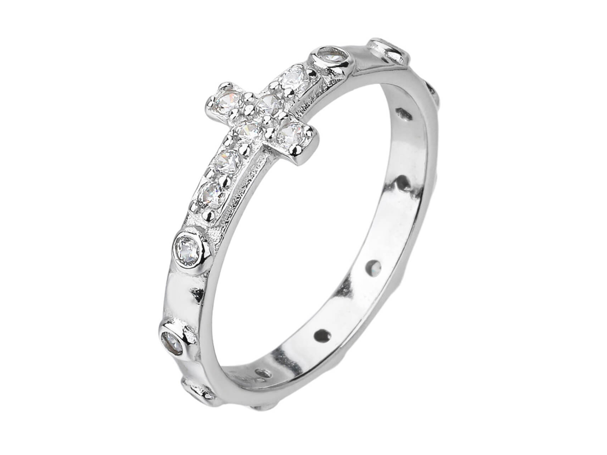 Stříbrný modlitební prsten DESÁTEK růženec zirkon Ag 925/1000