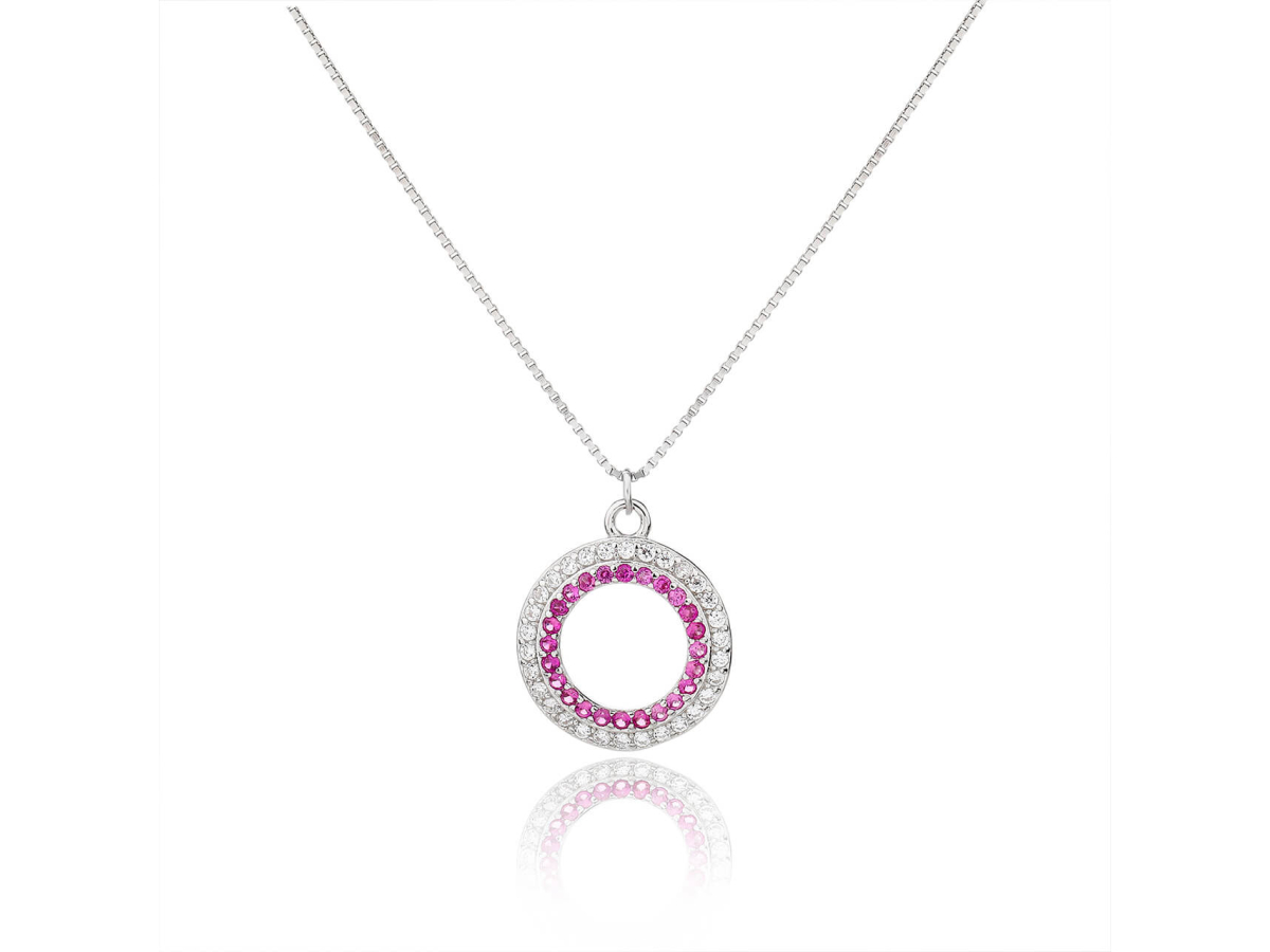 Stříbrný náhrdelník KROUŽEK červený zirkon VENEZIA Ag 925/1000