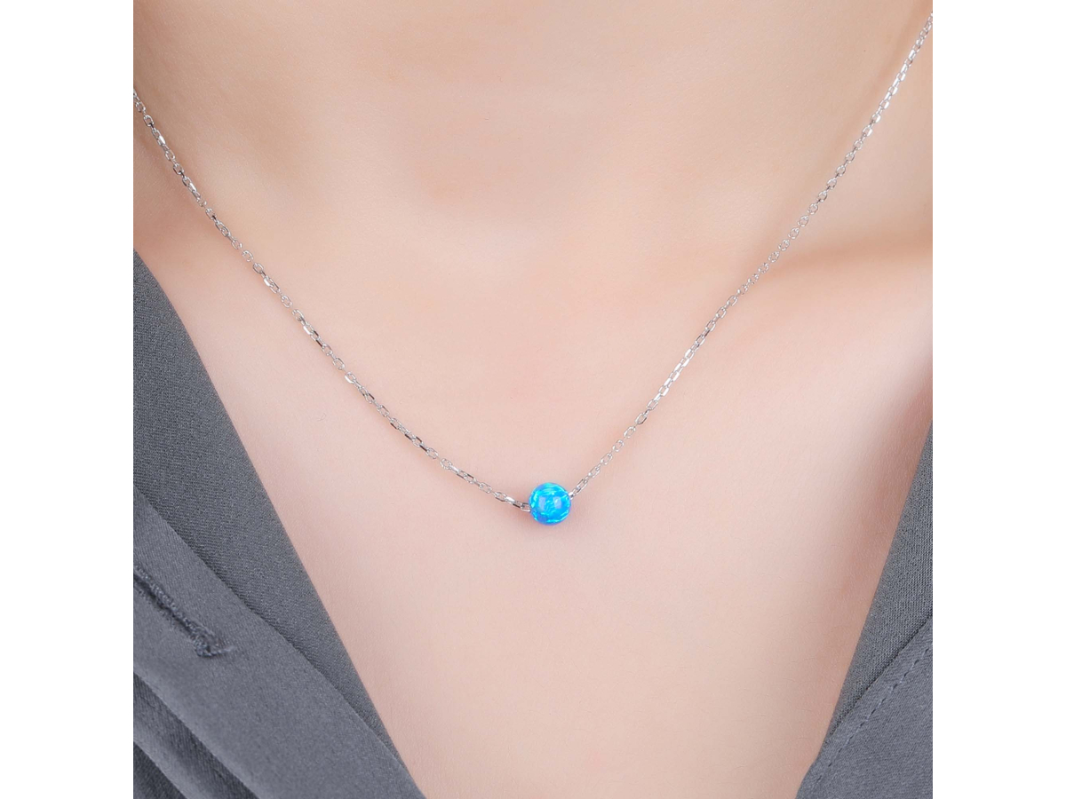 Stříbrný náhrdelník KULIČKA 5 mm modrý OPÁL Ag 925/1000