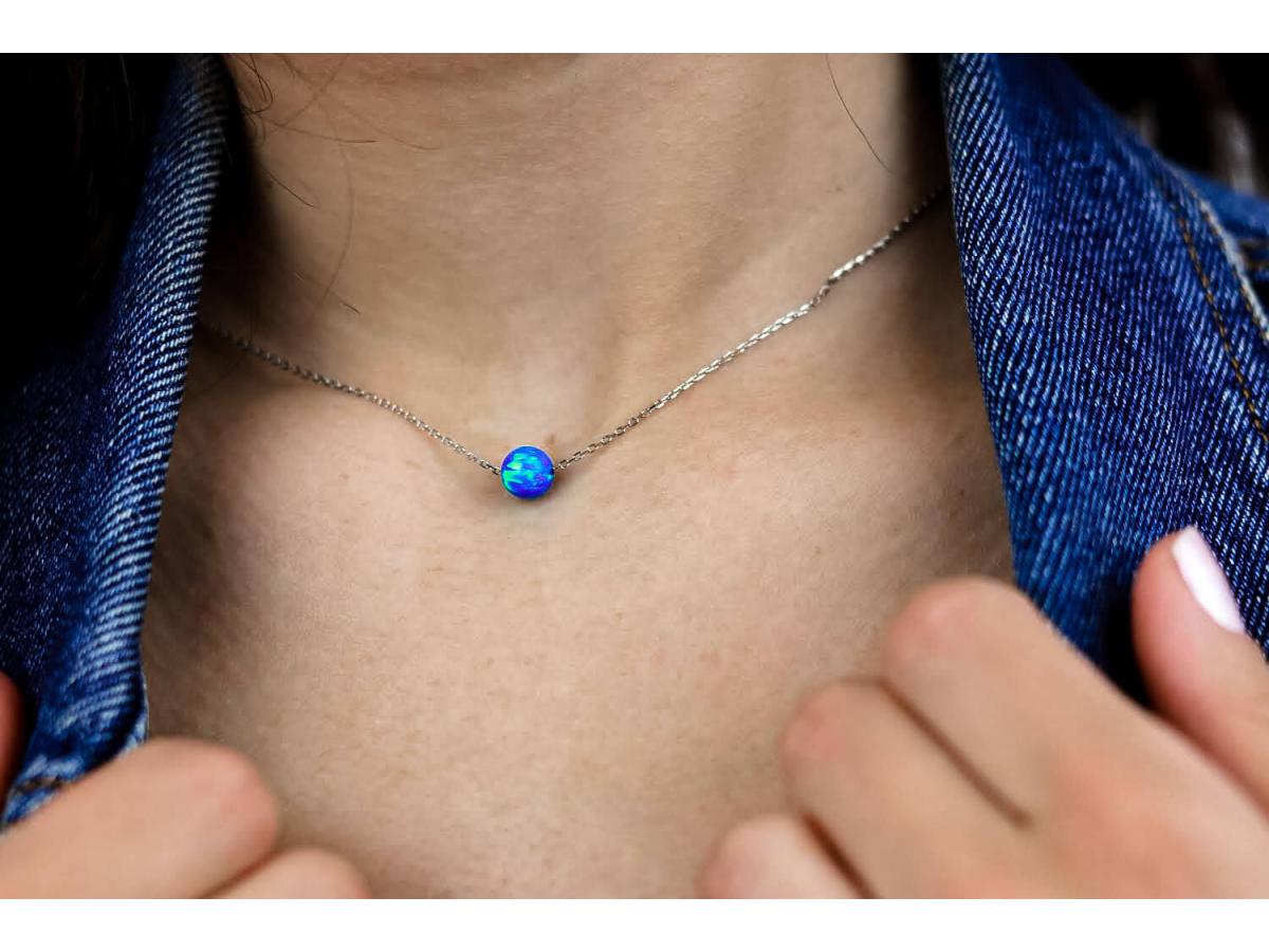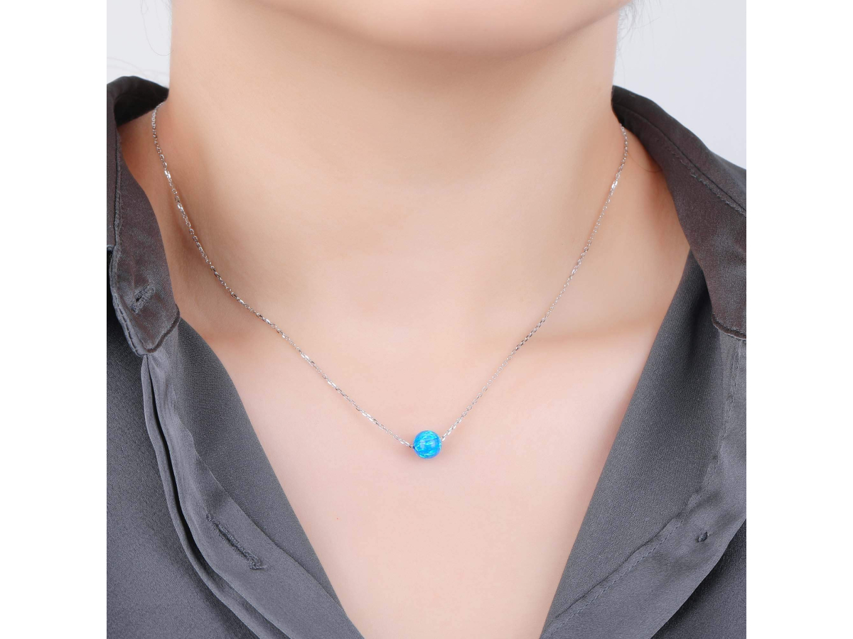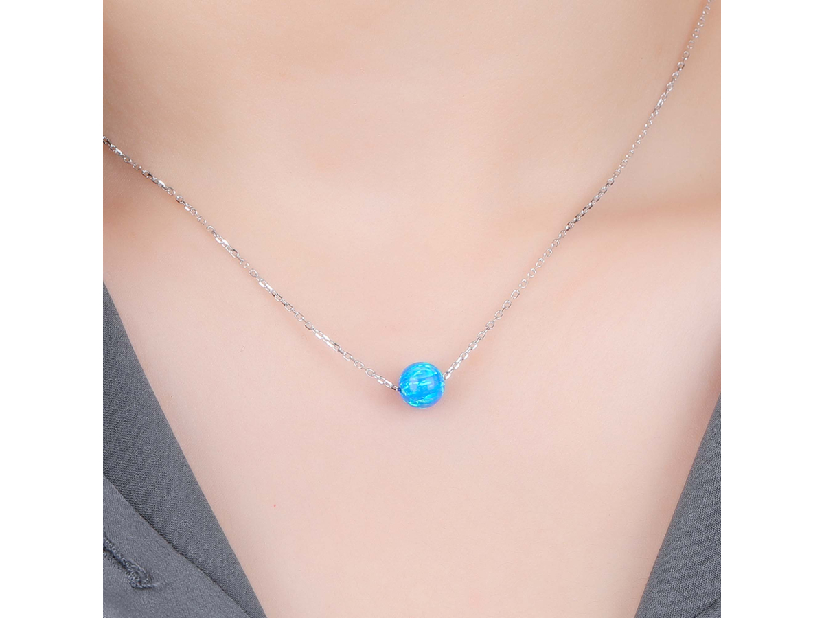 Stříbrný náhrdelník KULIČKA 7 mm modrý OPÁL Ag 925/1000