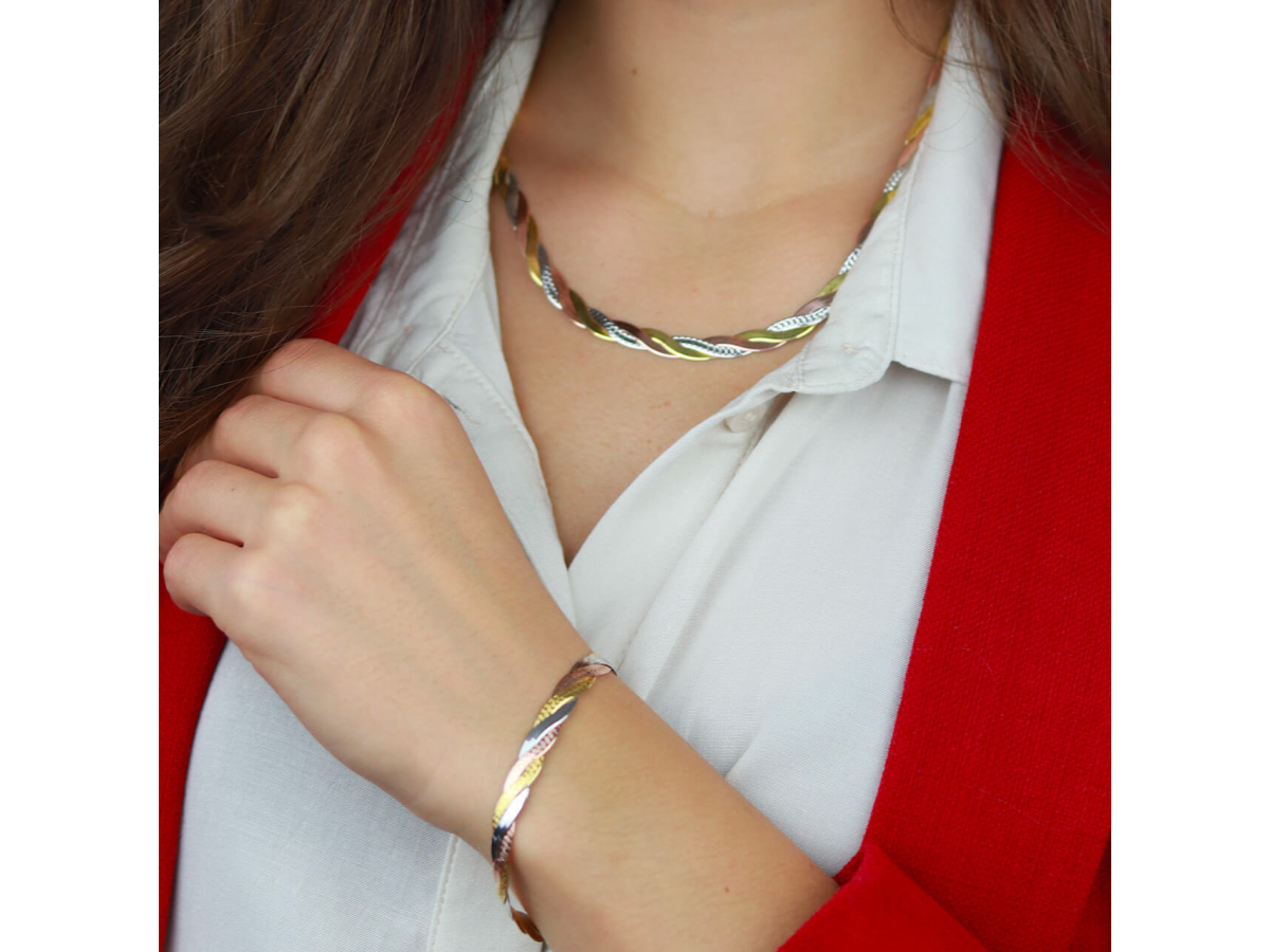 Stříbrný náhrdelník PLETENÝ 6 mm TRICOLOR Ag 925/1000