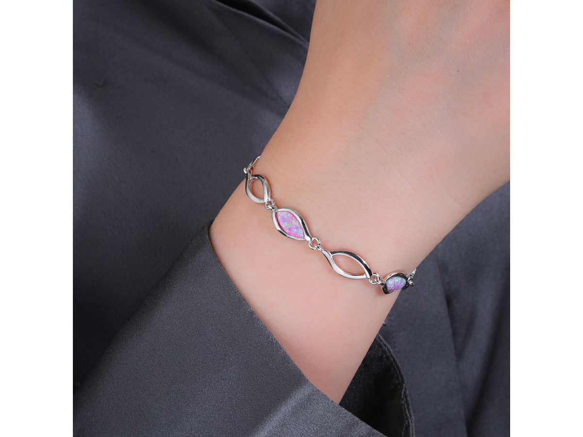 Stříbrný náramek KAPKY růžový OPÁL Ag 925/1000