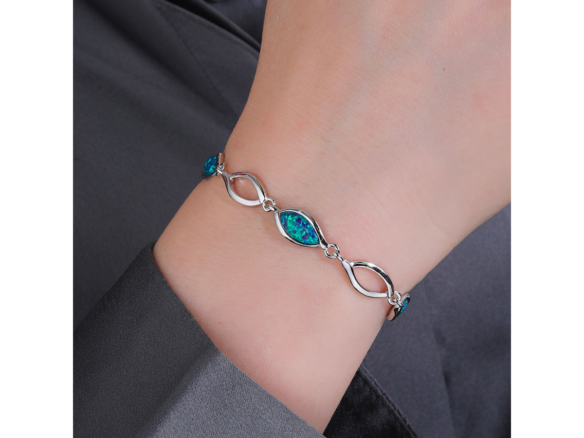 Stříbrný náramek KAPKY zelený OPÁL Ag 925/1000