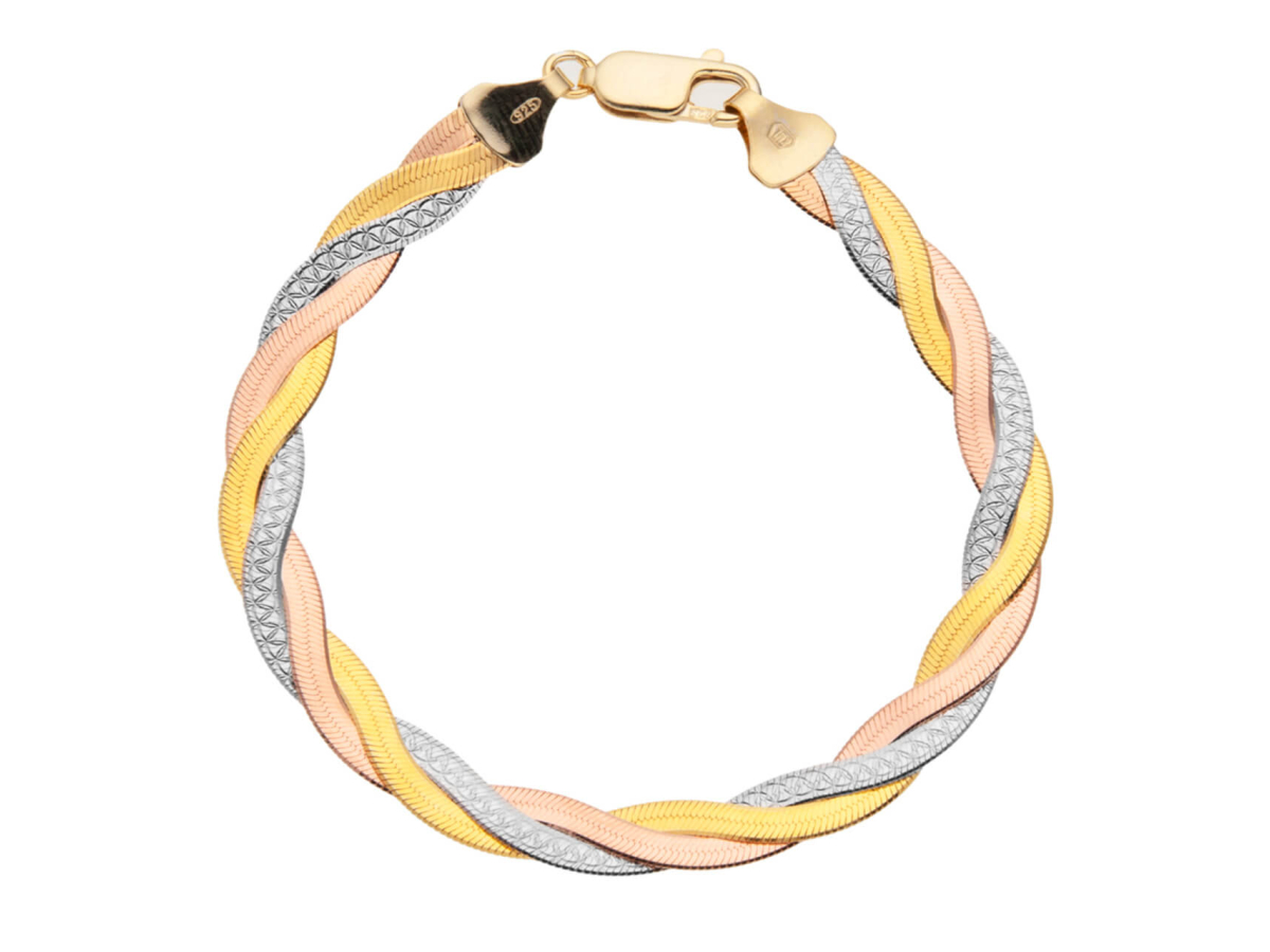 Stříbrný náramek PLETENÝ 6 mm TRICOLOR Ag 925/1000