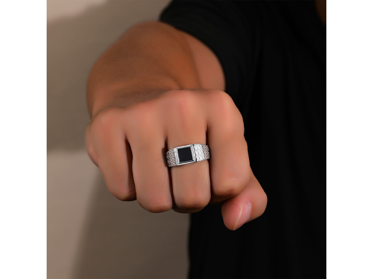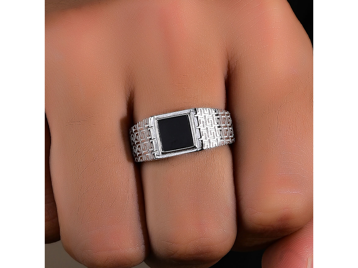 - Nádherný a luxusní prsten s černým syntetickým onyxem