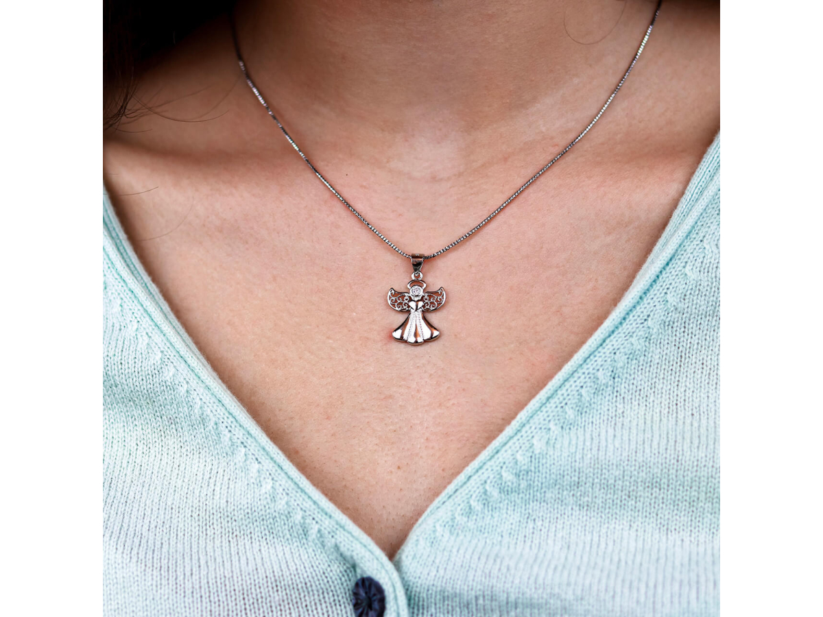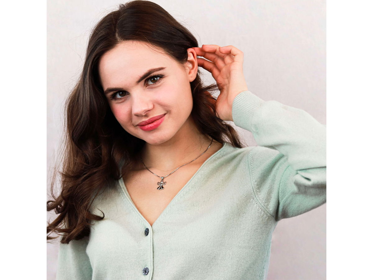 Elegantní stříbrný přívěsek nádherně a zdobně vymodelovaného andílka. Zářící připomínka vašeho anděla strážného, který projasní den vám i vašemu okolí. Přívěsek je...