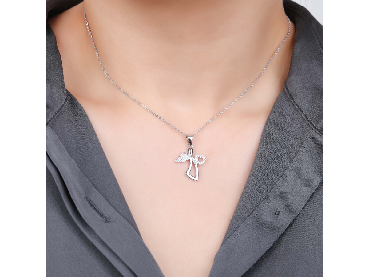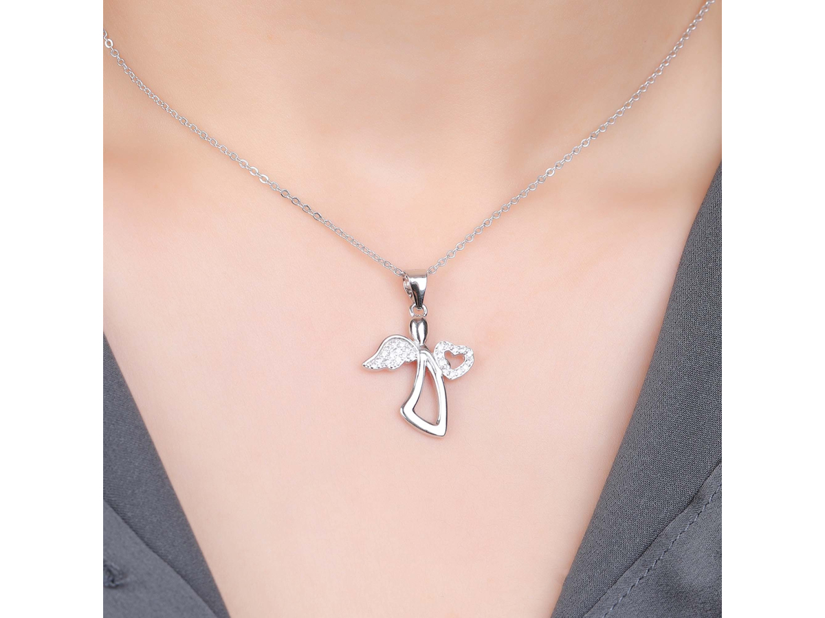 Krásný jemný přívěsek ve tvaru andílka s jemným srdíčkem Osazený kubickými zirkony nejvyšší kvality AAA Špičková kvalita šperku z poctivého stříbra 925/1000...