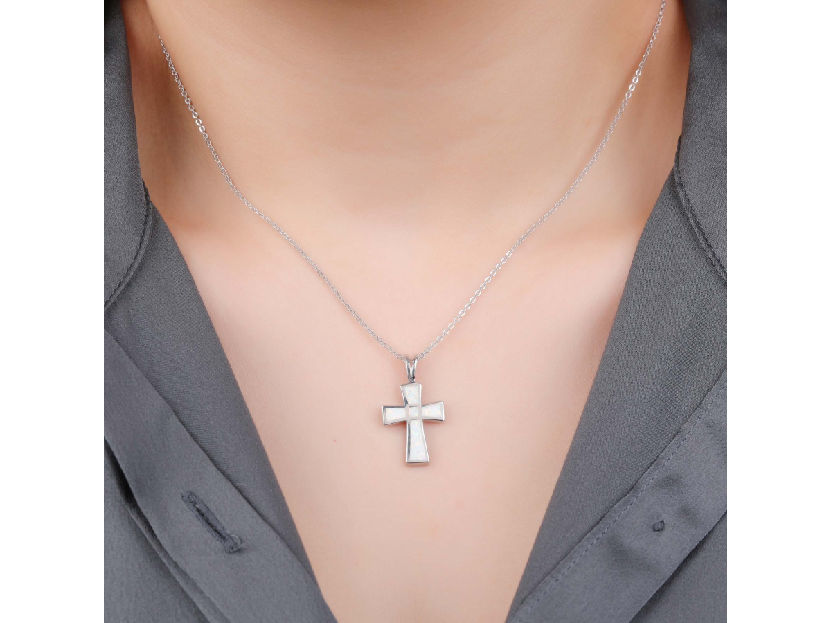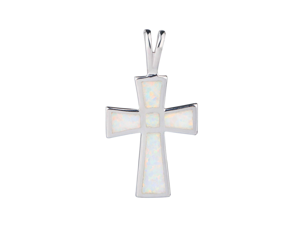Stříbrný přívěsek KŘÍŽ bílý OPÁL Ag 925/1000