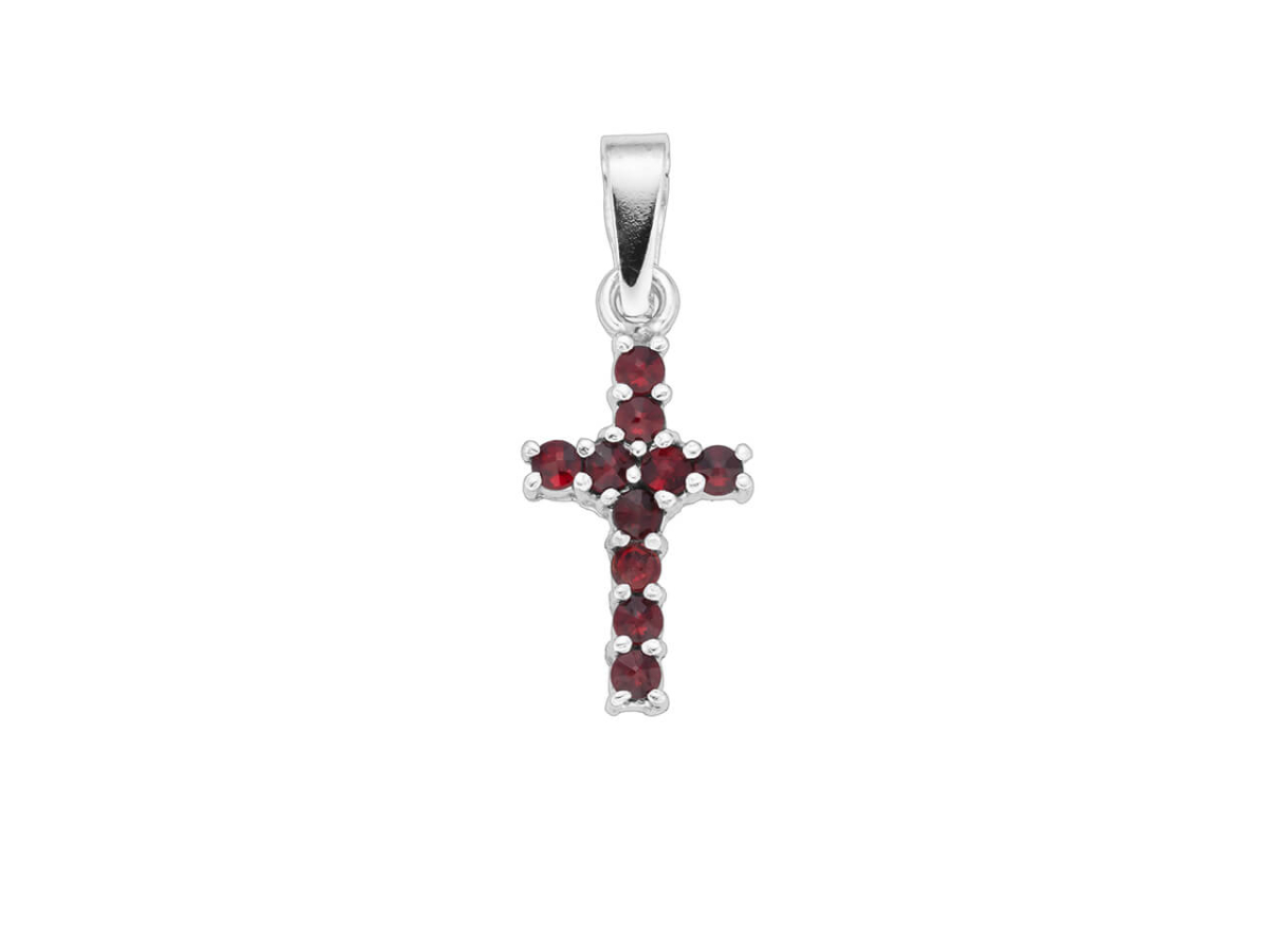 Stříbrný přívěsek KŘÍŽ český granát Ag 925/1000