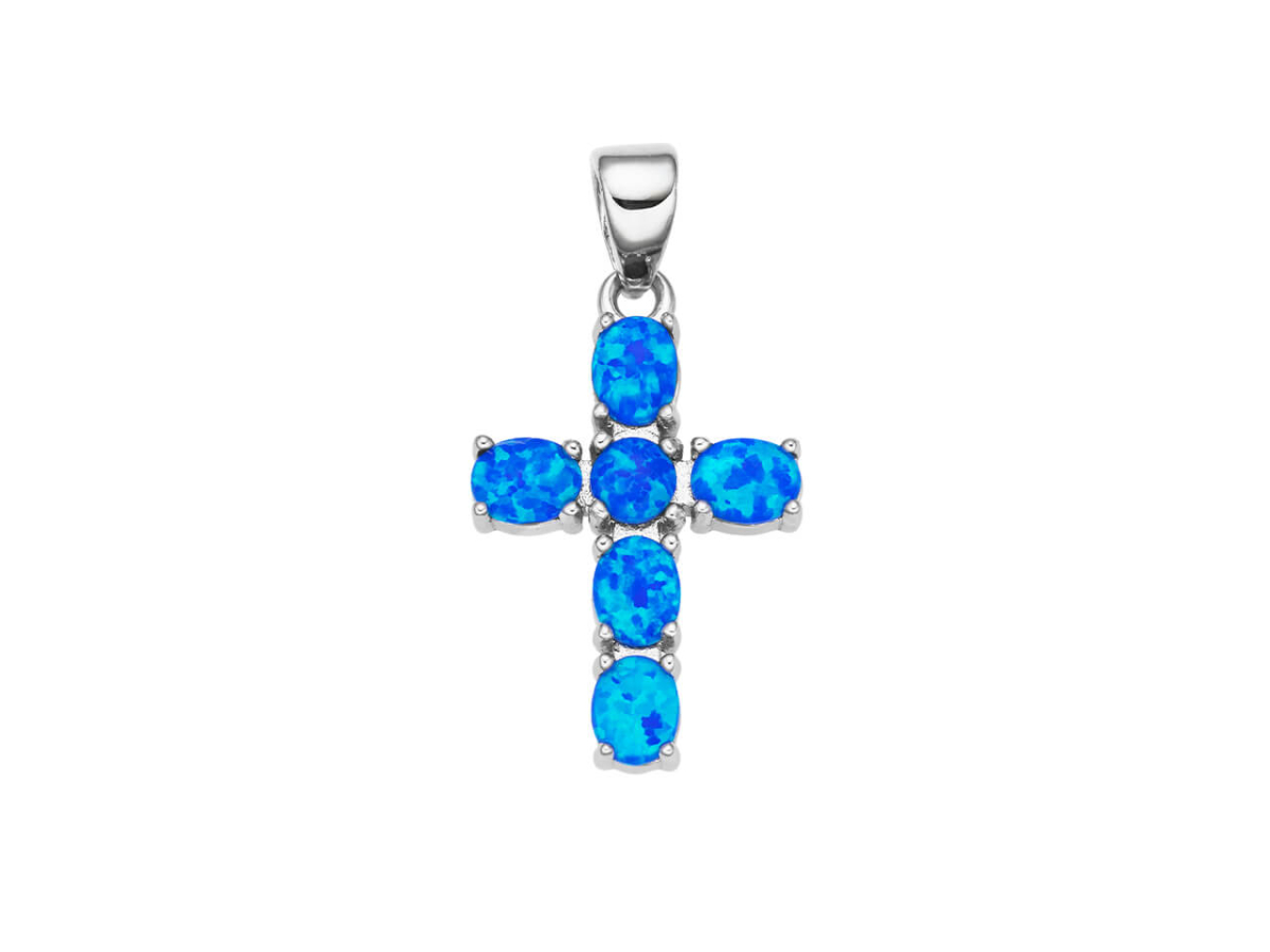 Stříbrný přívěsek KŘÍŽ modrý OPÁL Ag 925/1000