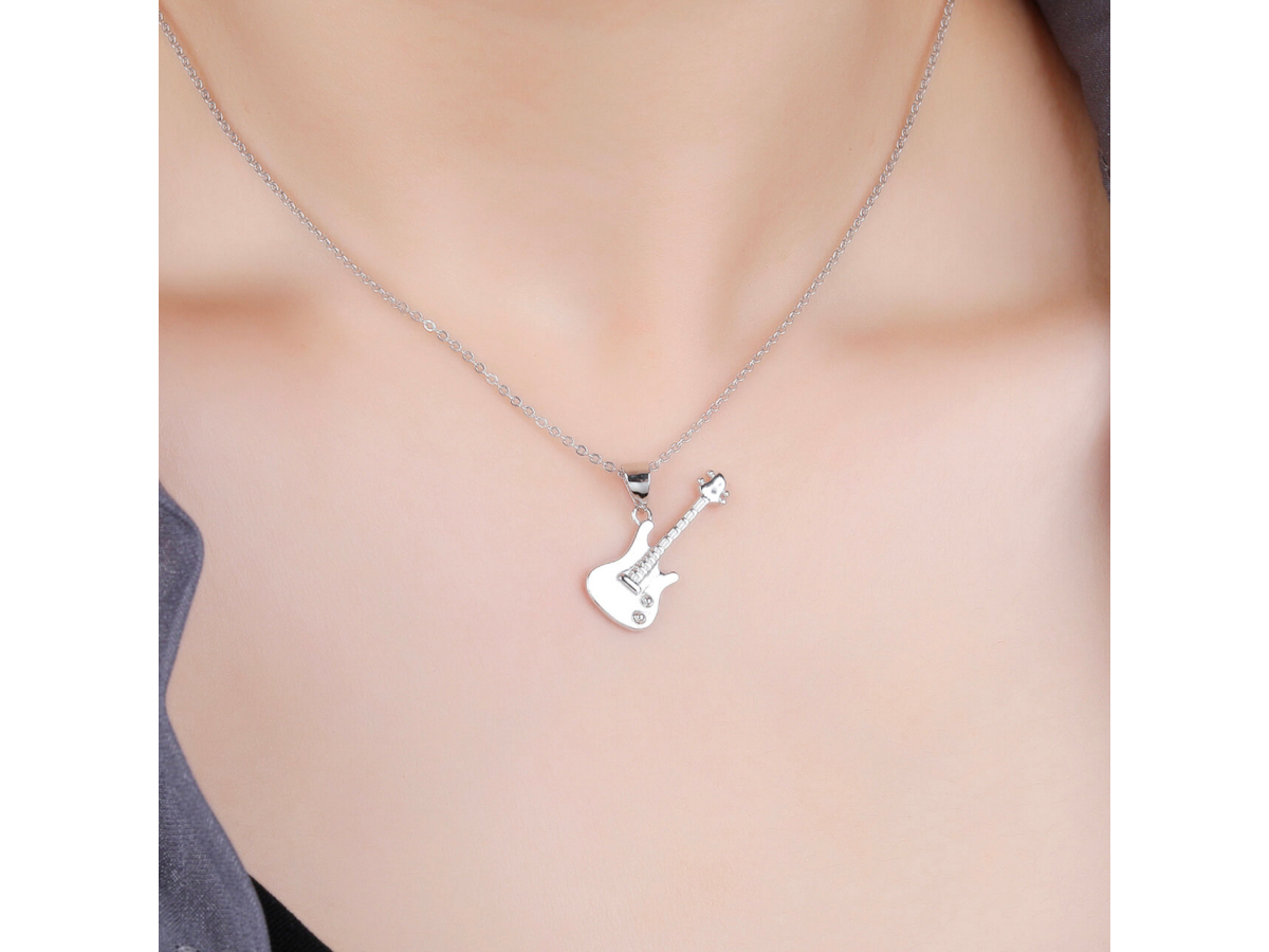 - Krásný stříbrný přívěsek ve tvaru kytary pro všechny malé i velké hudebníky.