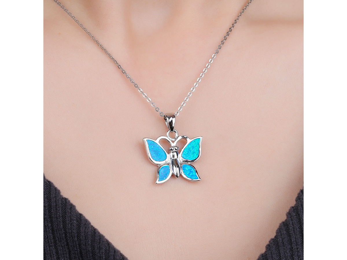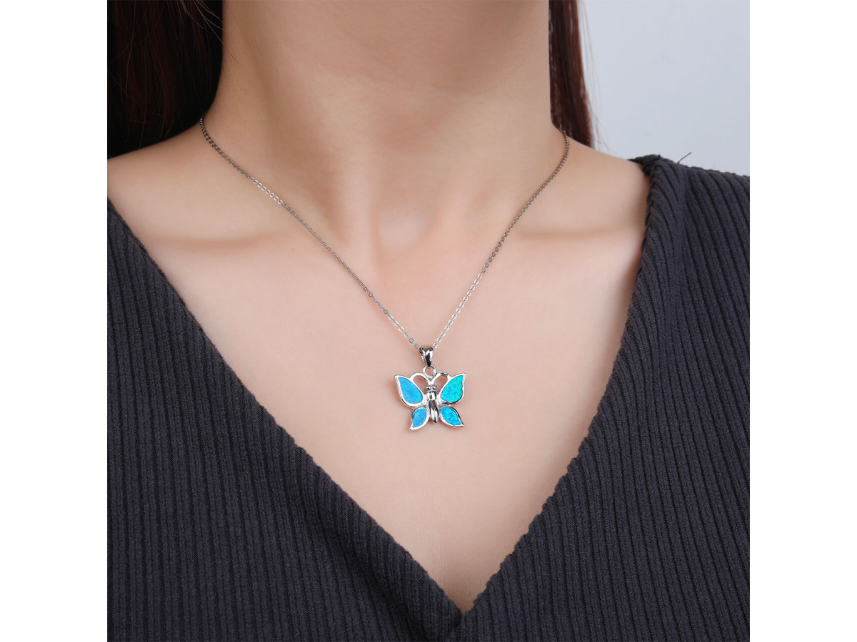 Stříbrný přívěsek MOTÝL modrý OPÁL Ag 925/1000