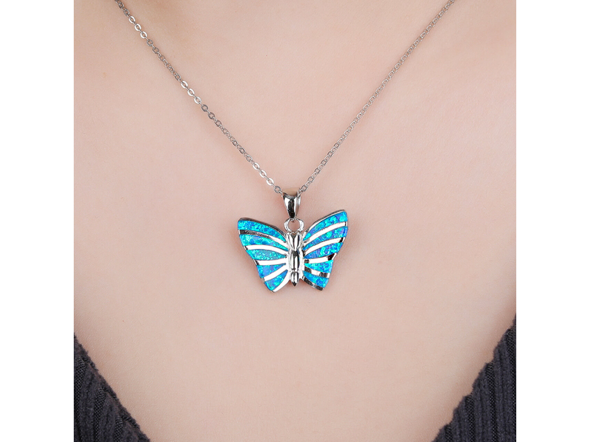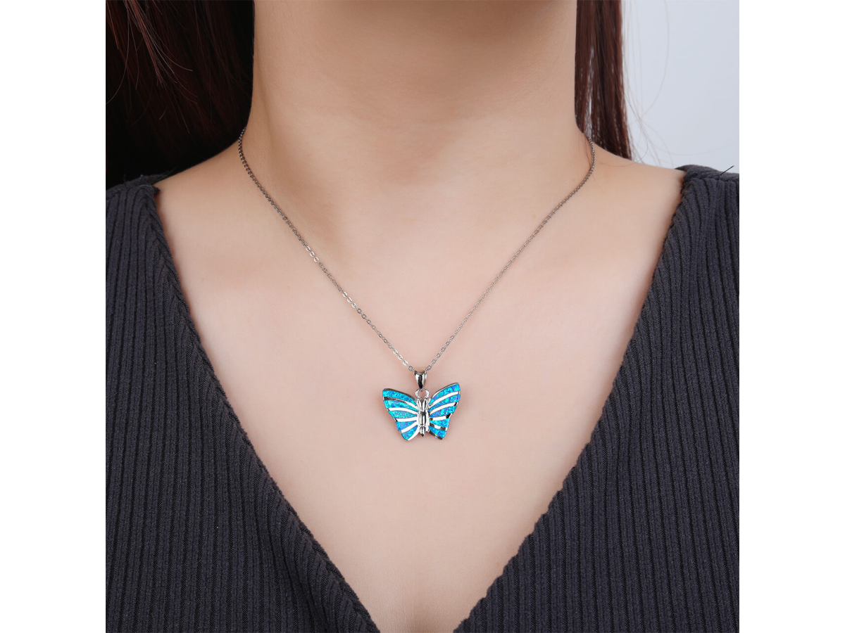 Stříbrný přívěsek MOTÝL modrý OPÁL Ag 925/1000