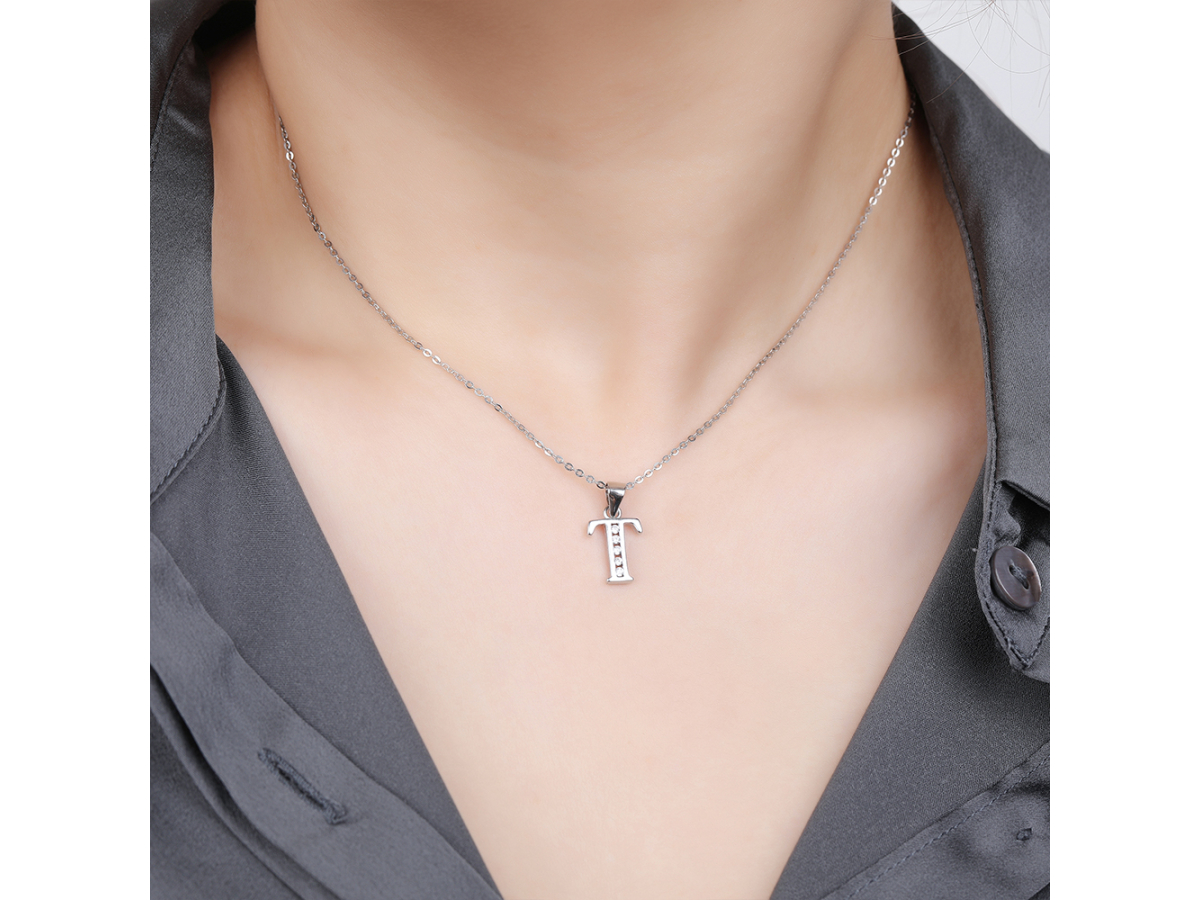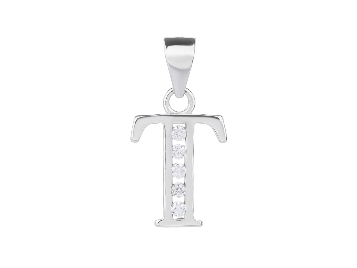 Stříbrný přívěsek PÍSMENO T se zirkony Ag 925/1000