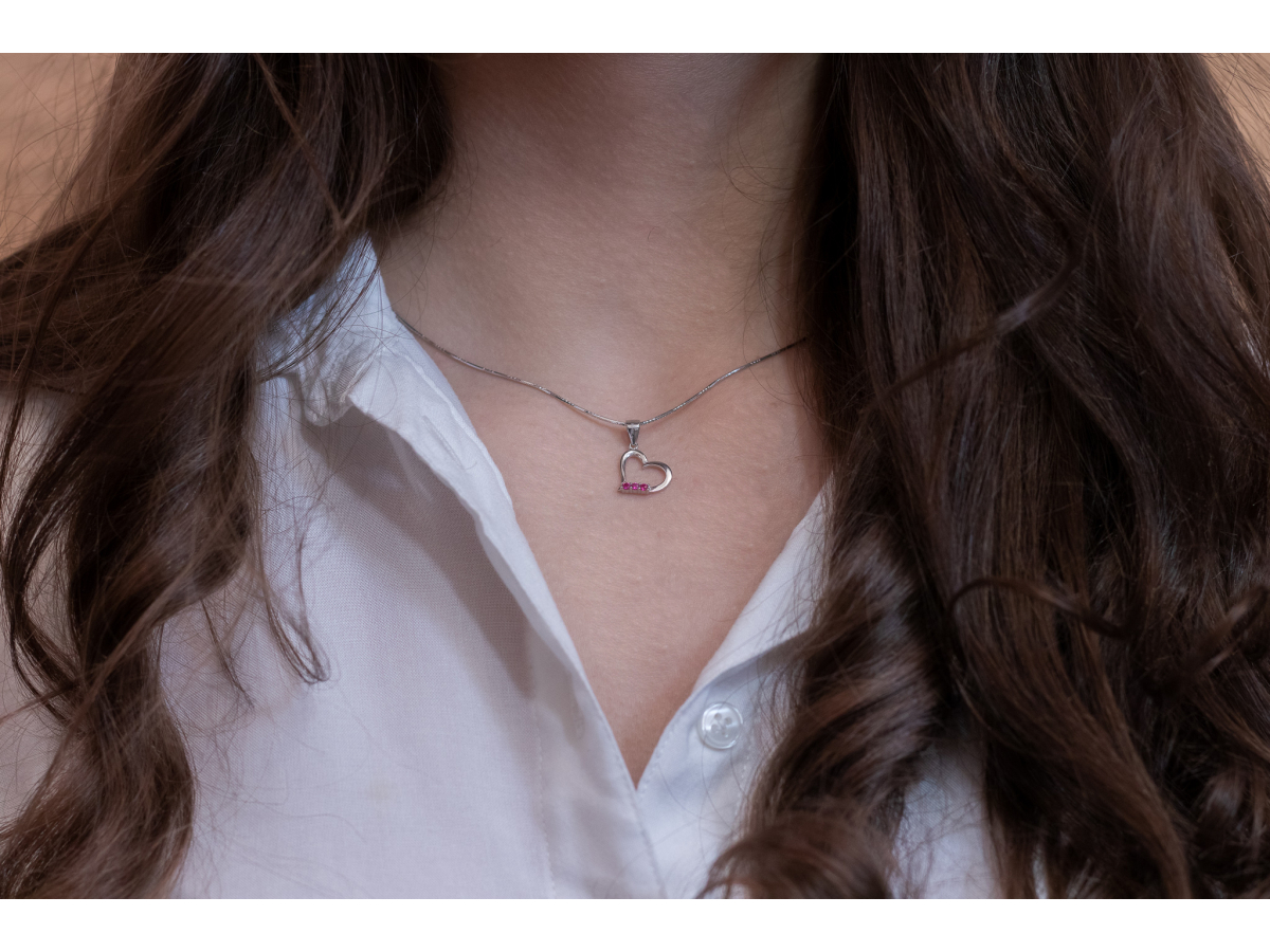 Stříbrný přívěsek SRDCE RUBÍN Ag 925/1000