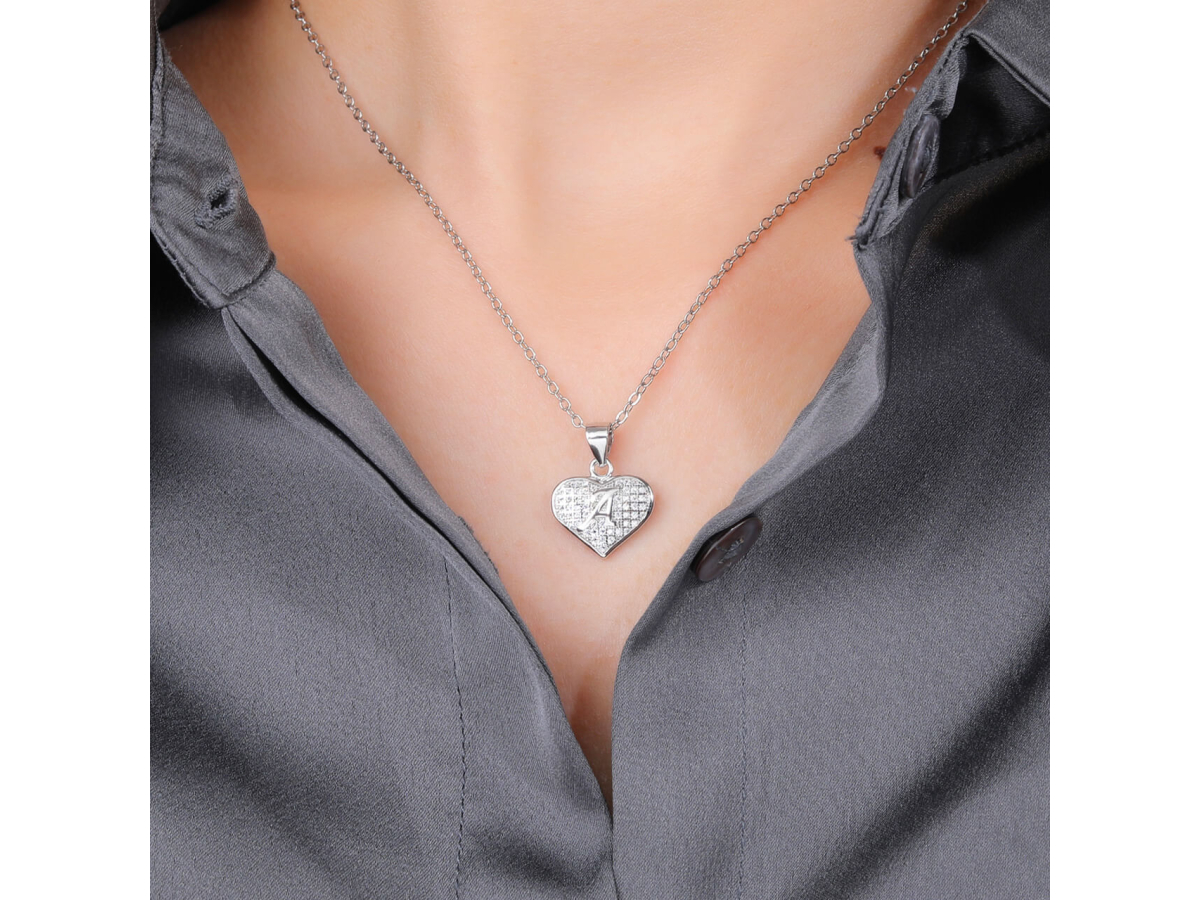 Stříbrný přívěsek SRDCE S PÍSMENKEM A Ag 925/1000