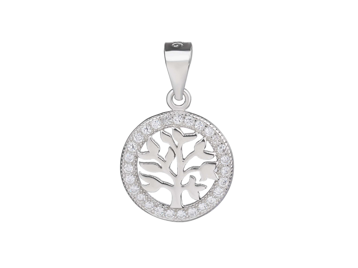 Stříbrný přívěsek STROM ŽIVOTA 13 mm bílý Ag 925/1000