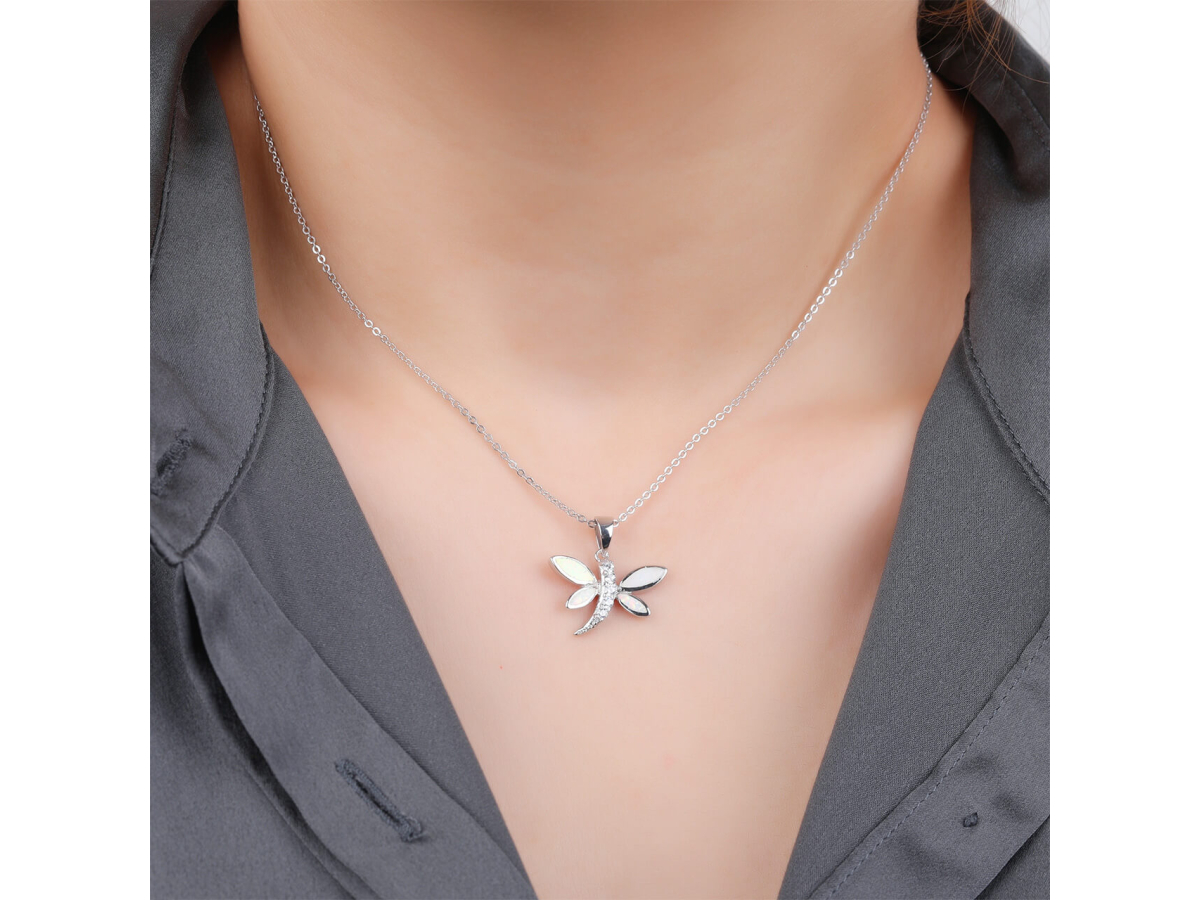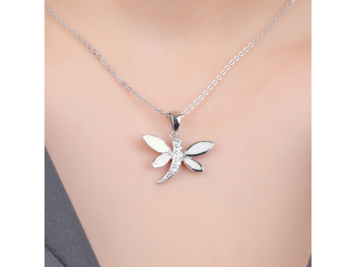 Stříbrný přívěsek VÁŽKA bílý OPÁL Ag 925/1000