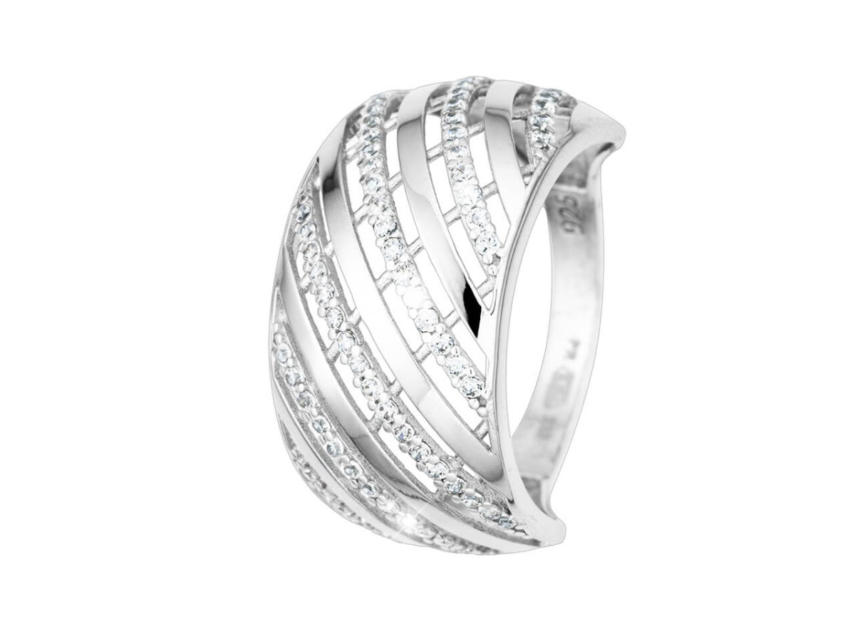 Stříbrný prsten s nádherně zářícími čirými zirkony. Vznešený šperk, který dá ten pravý lesk půvabu a ženství. Perfektní kousek pro každou ženu, která miluje šperky.