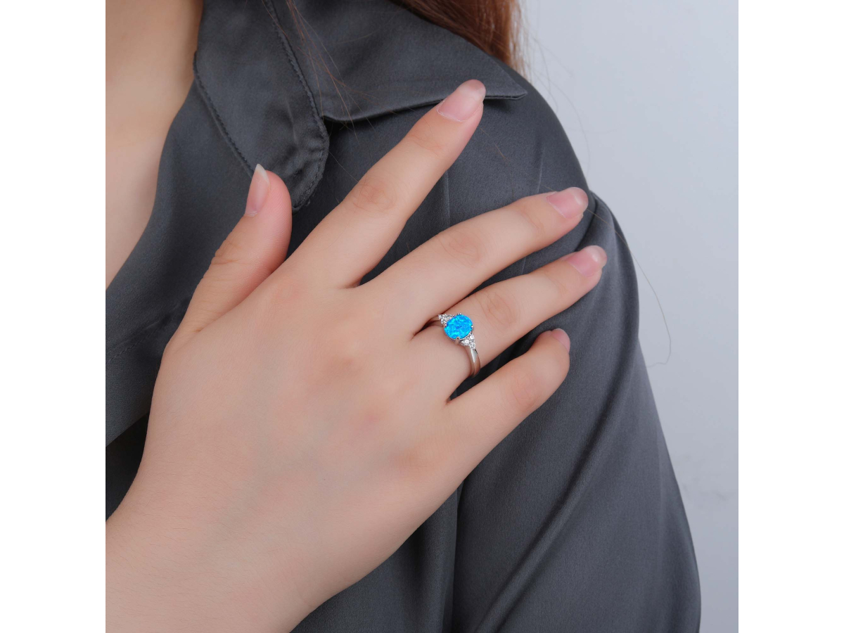 Stříbrný prsten ELEGANTNÍ modrý OPÁL Ag 925/1000