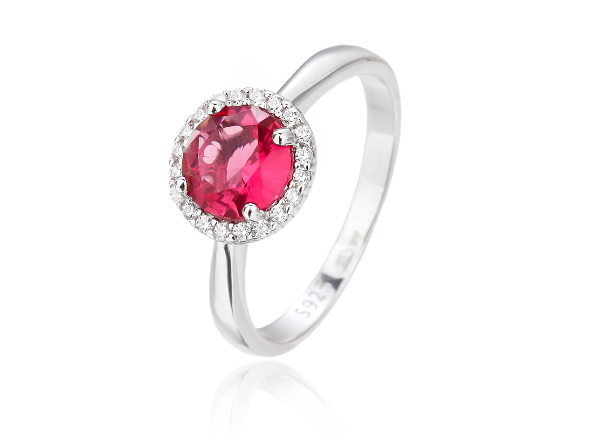 - Tento prsten okamžitě upoutá svým červeným zirkonem v rubínovém odstínu, který symbolizuje vášeň a energii.