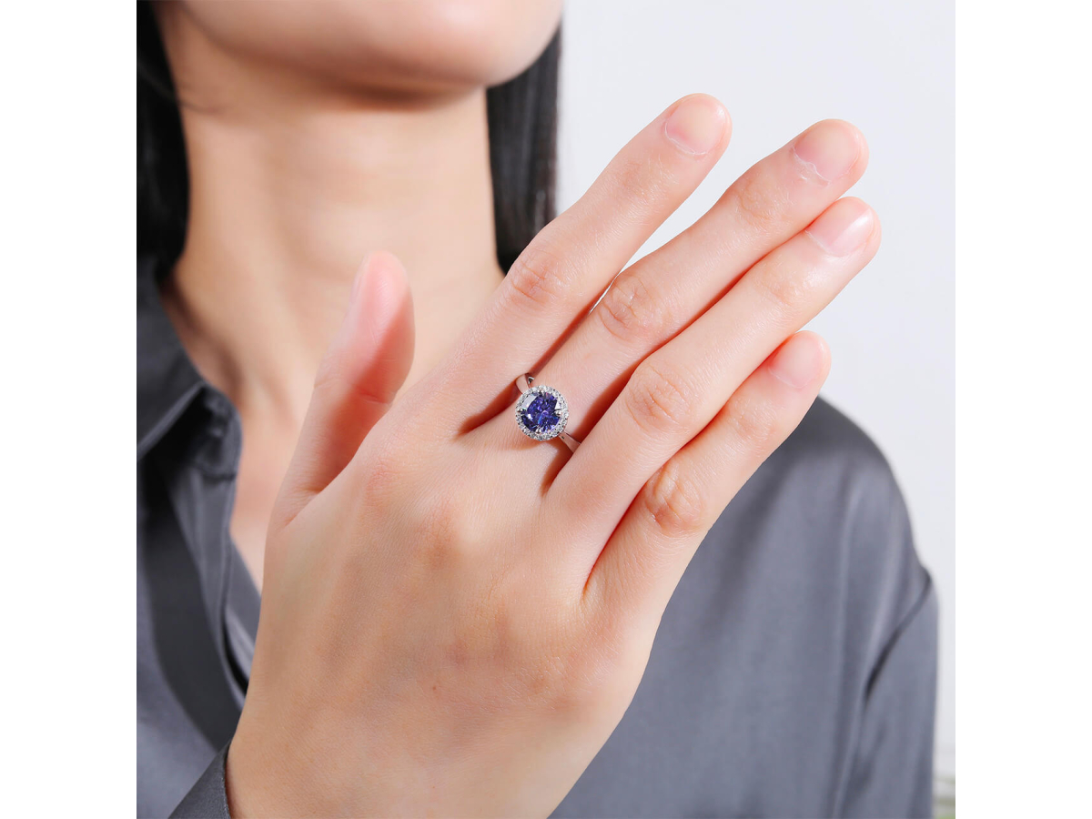 - Tento prsten okamžitě zaujme ametystově fialovým zirkonem, který působí noblesně a žensky.