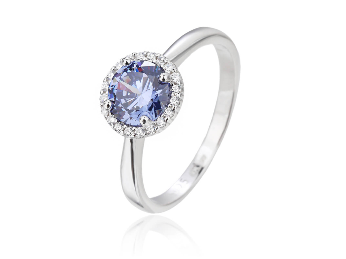 - Kulatý tvar centrálního kamene je zvýrazněn drobnými zirkony, které rozzáří každý pohled a dodají šperku třpytivý efekt.