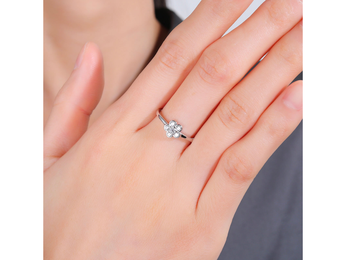 - Šest čirých zirkonů je uspořádáno do tvaru květinky, která se na ruce krásně třpytí a rozzáří každý den.