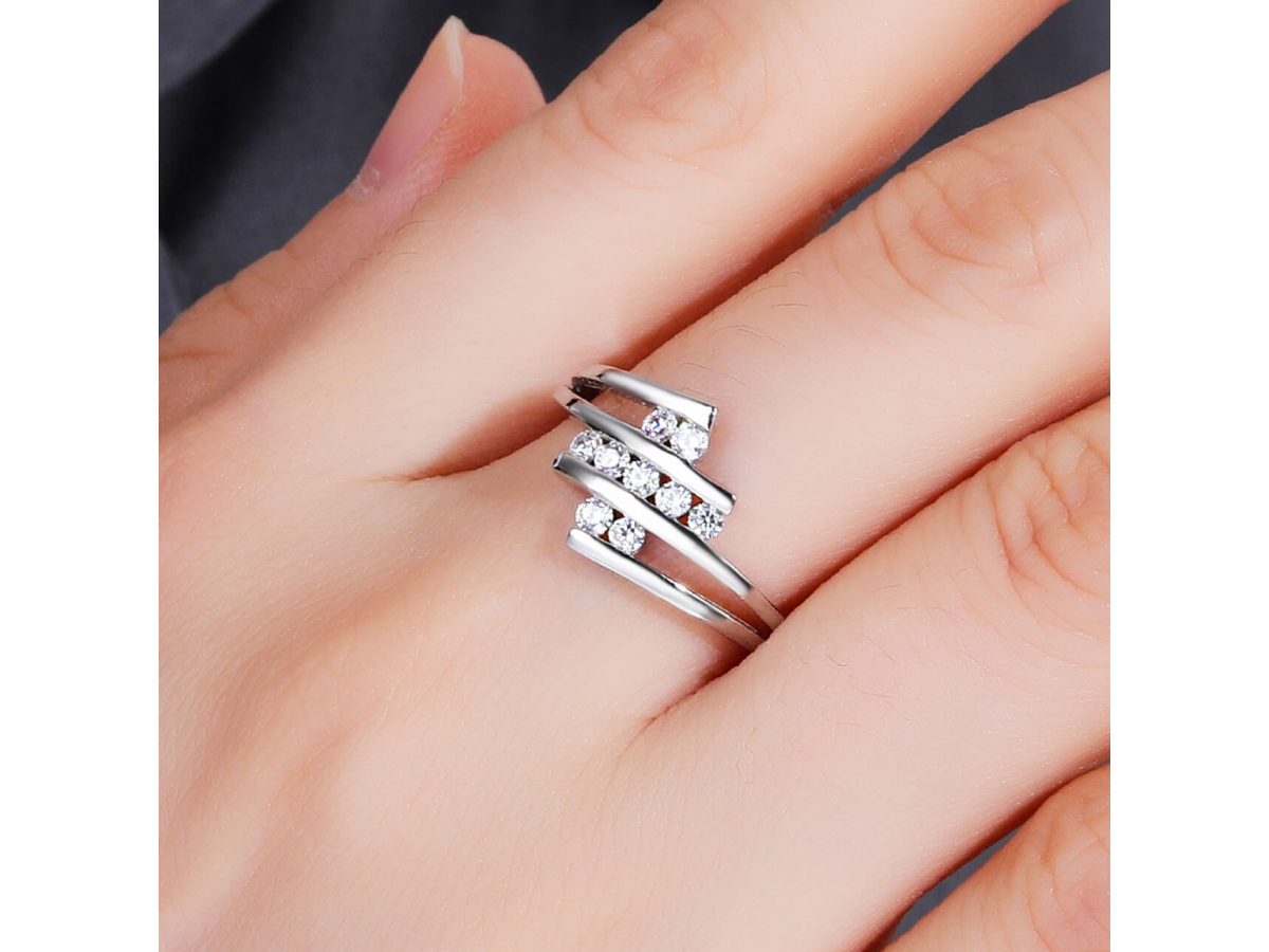 Stříbrný prsten s nádherně zářícími čirými zirkony. Vznešený šperk, který dá ten pravý lesk půvabu a ženství. Perfektní kousek pro každou ženu, která miluje šperky.