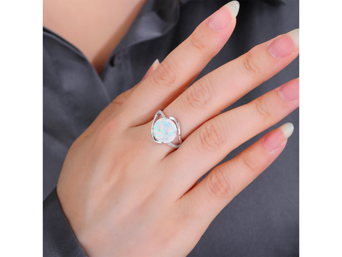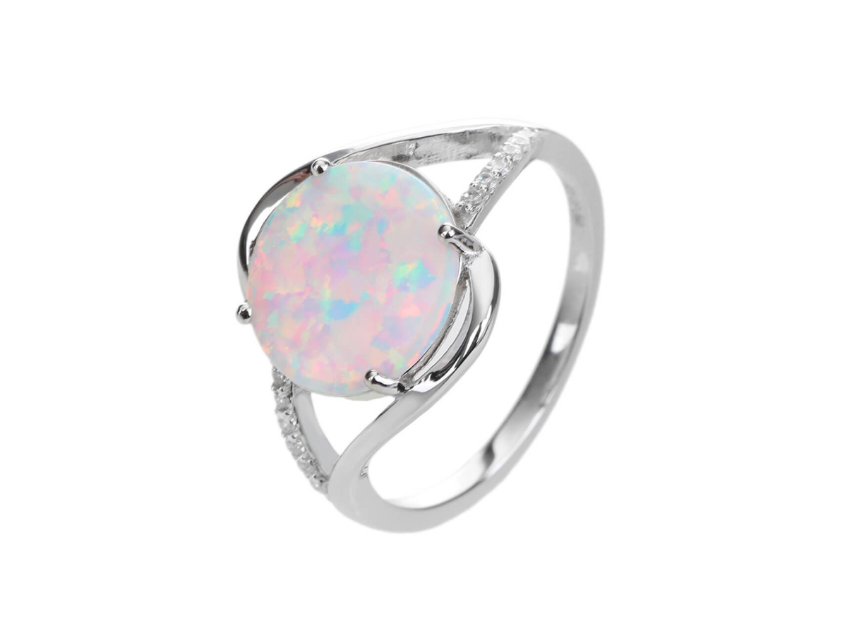 Stříbrný prsten mohutný SOLITÉR bílý OPÁL AG 925/1000