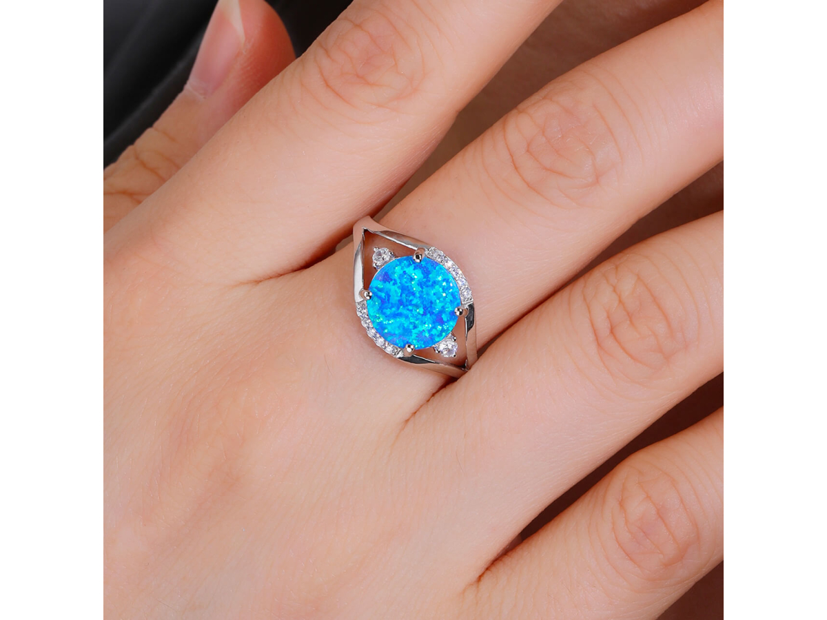 Stříbrný prsten mohutný SOLITÉR modrý OPÁL AG 925/1000