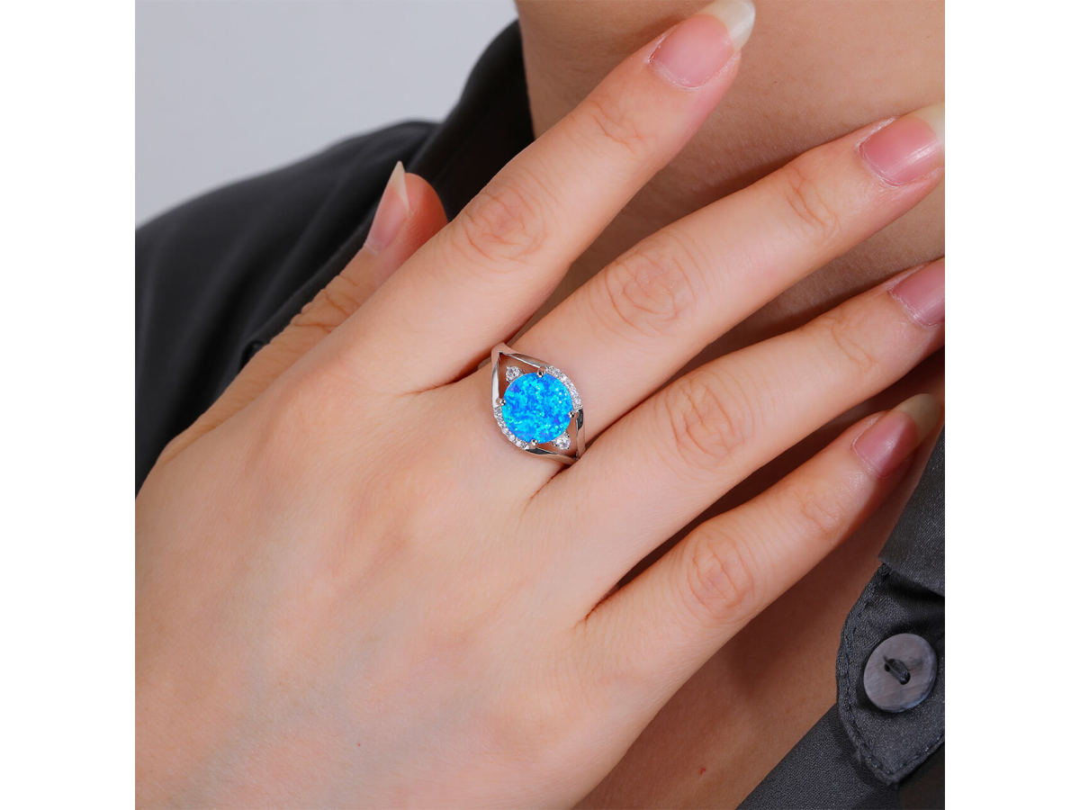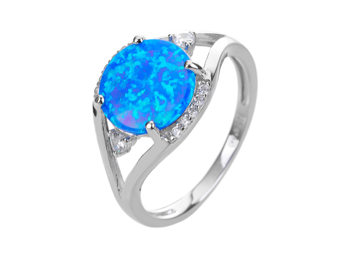Stříbrný prsten mohutný SOLITÉR modrý OPÁL AG 925/1000