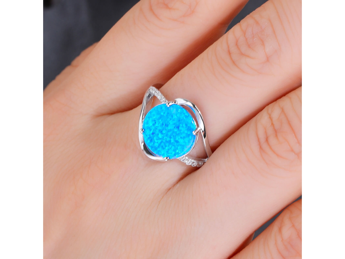 Stříbrný prsten mohutný SOLITÉR modrý OPÁL AG 925/1000