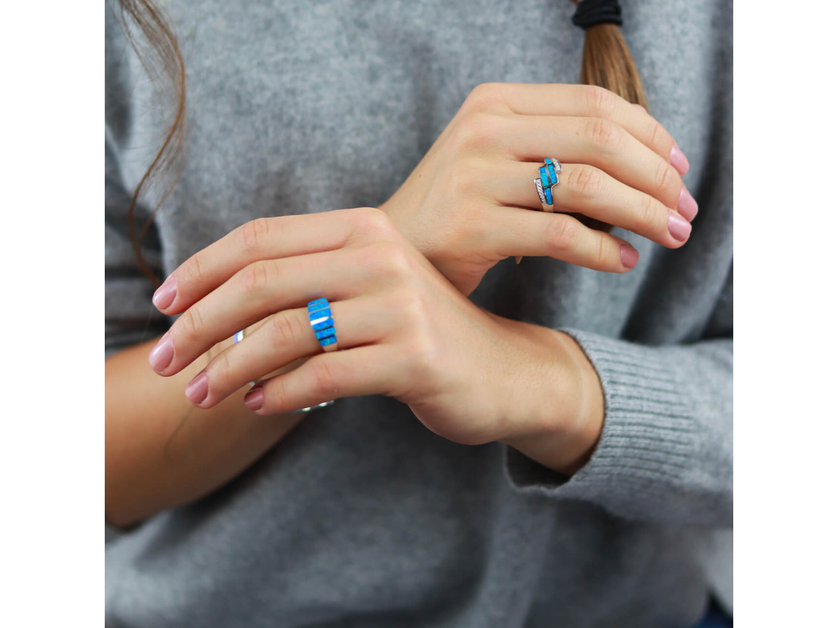 Stříbrný prsten NEBESKÝ modrý OPÁL Ag 925/1000