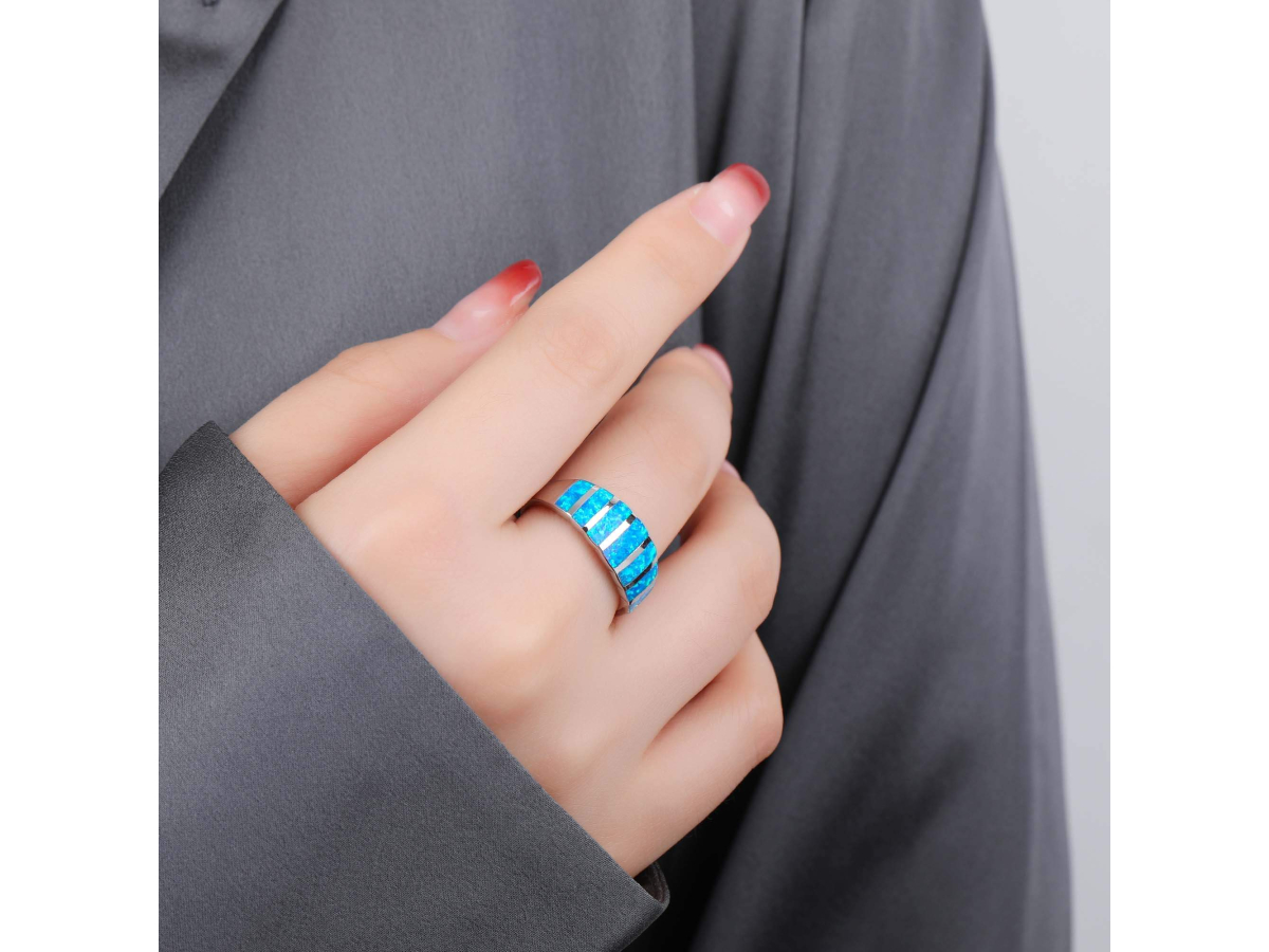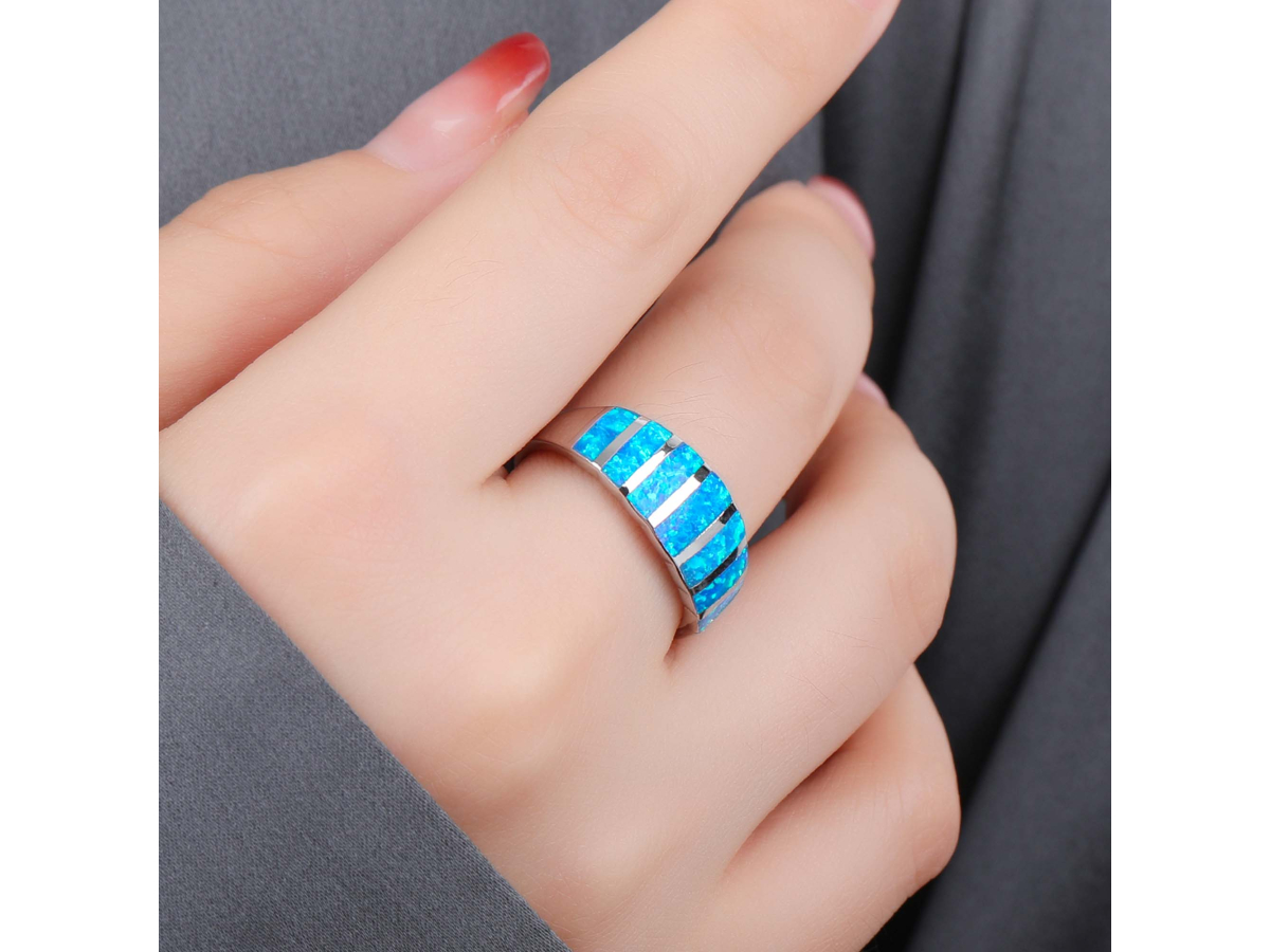 Stříbrný prsten NEBESKÝ modrý OPÁL Ag 925/1000