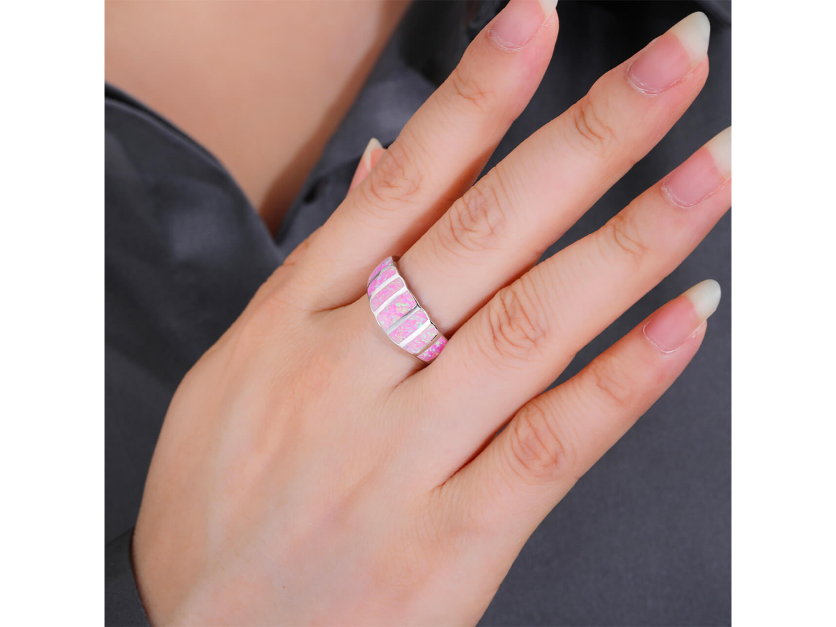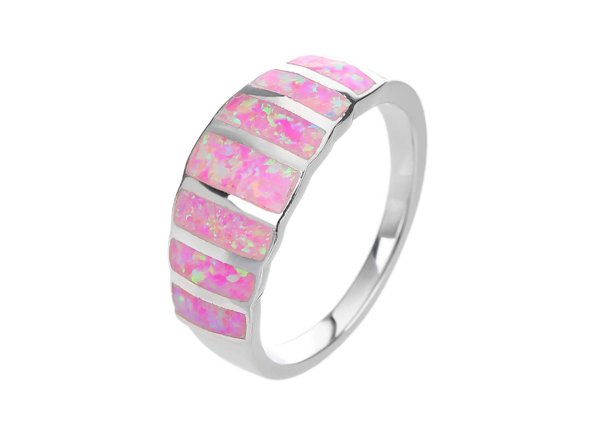 Stříbrný prsten NEBESKÝ růžový OPÁL Ag 925/1000