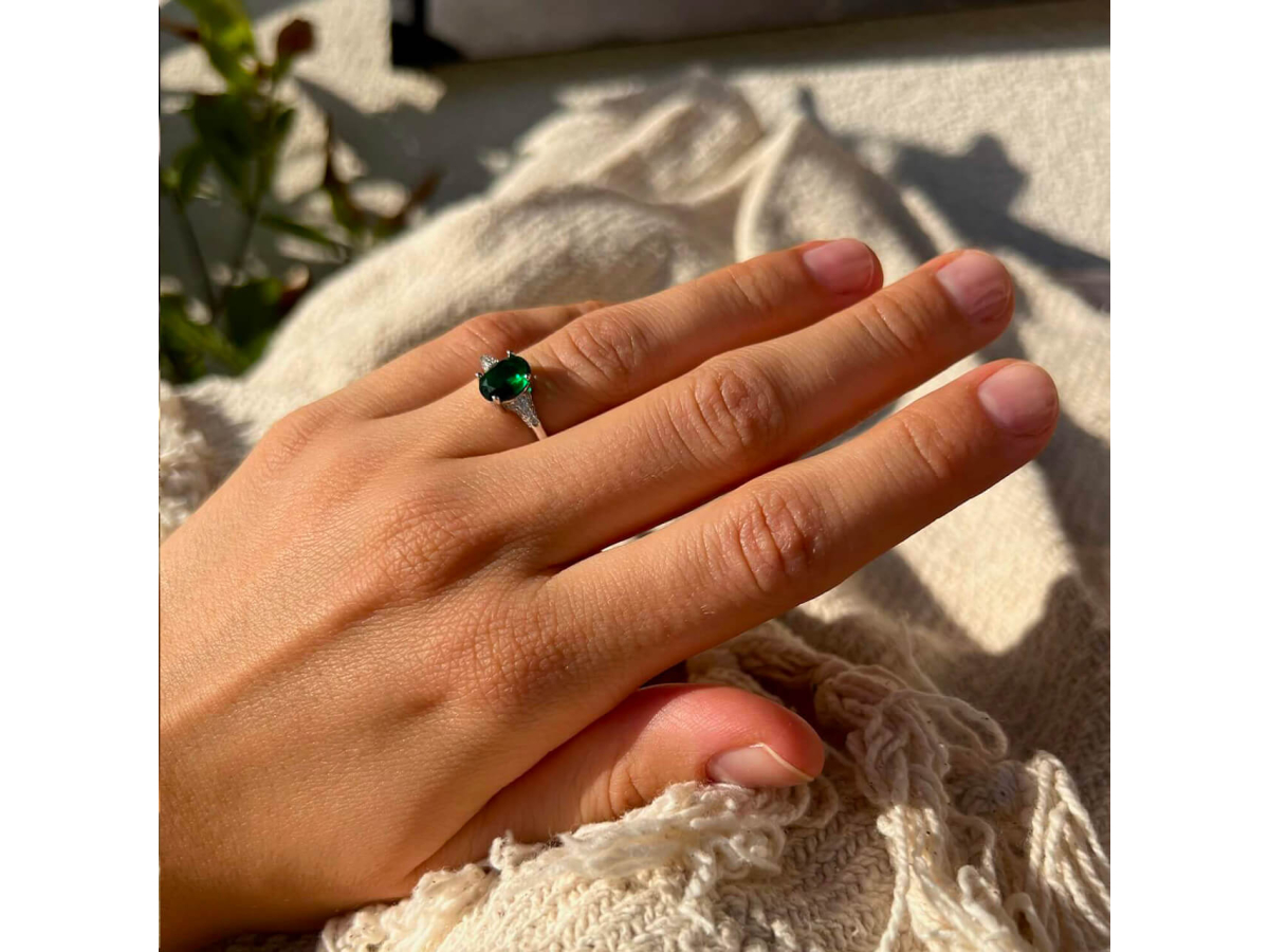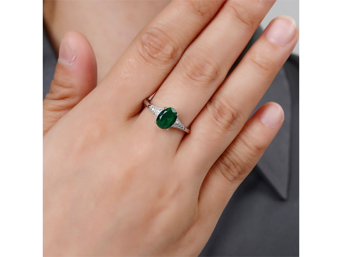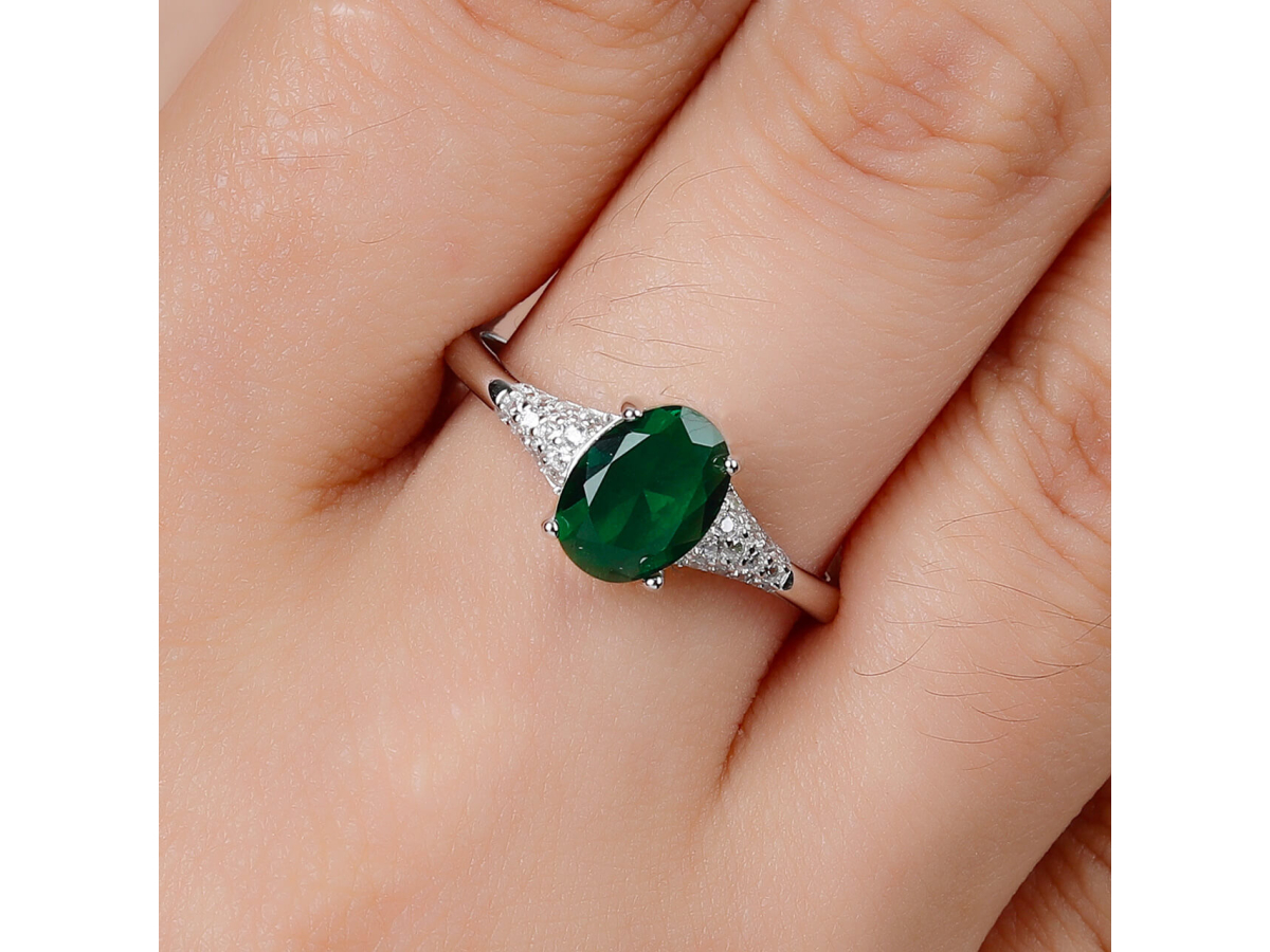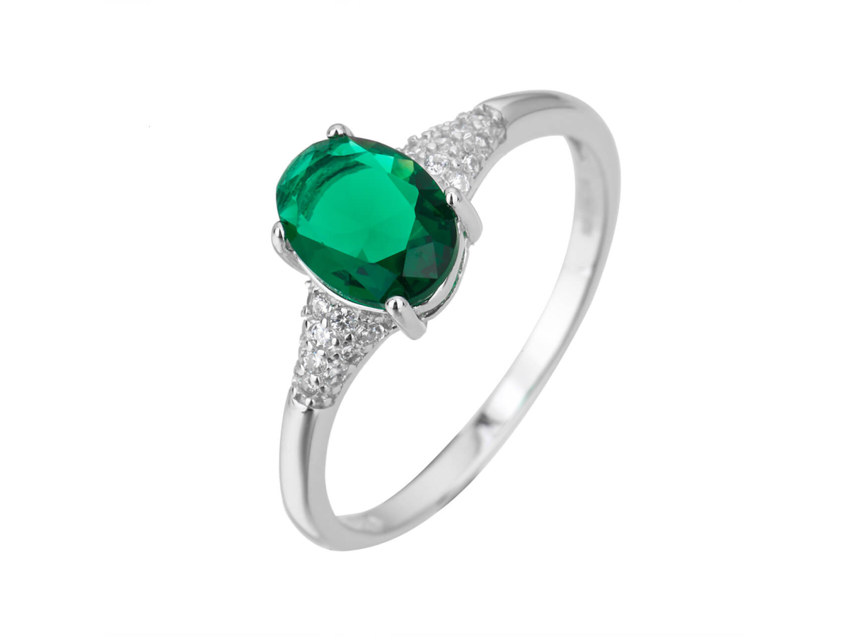 Stříbrný prsten OVÁL smaragd Ag 925/1000