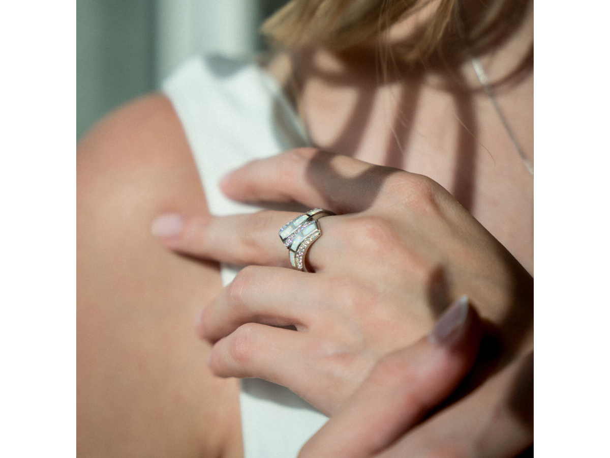 Stříbrný prsten ŘECKÝ bílý OPÁL AG 925/1000