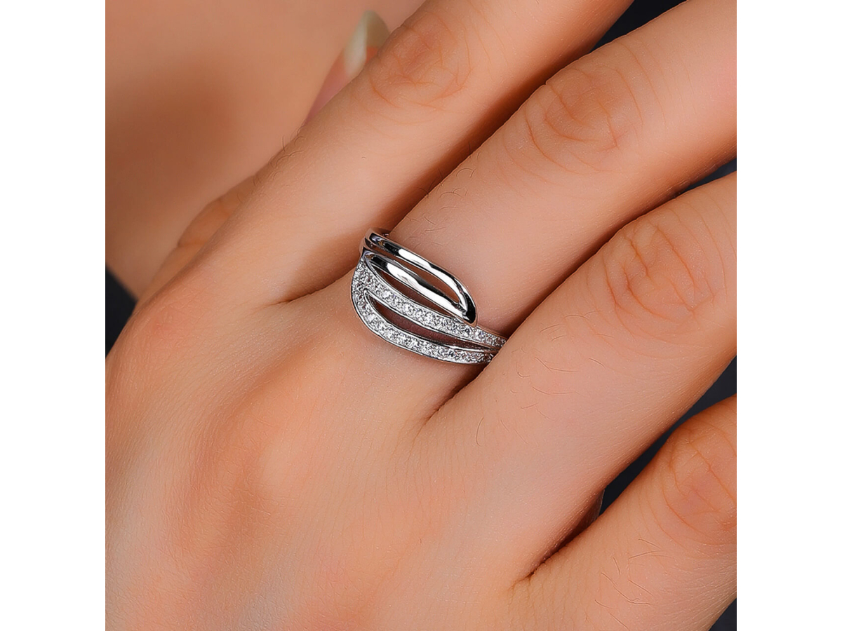 Stříbrný prsten s nádherně zářícími čirými zirkony. Vznešený šperk, který dá ten pravý lesk půvabu a ženství. Perfektní kousek pro každou ženu, která miluje šperky.