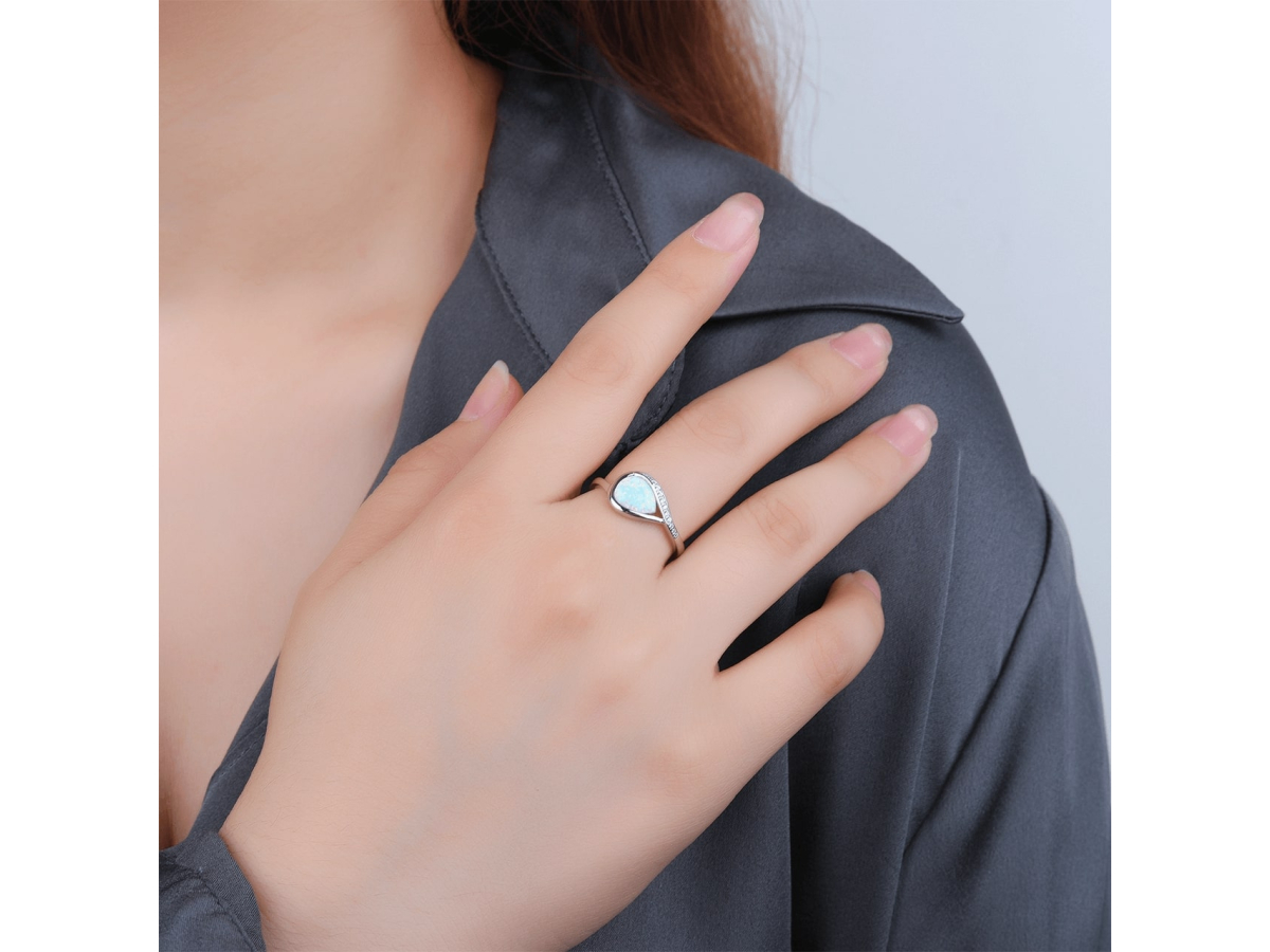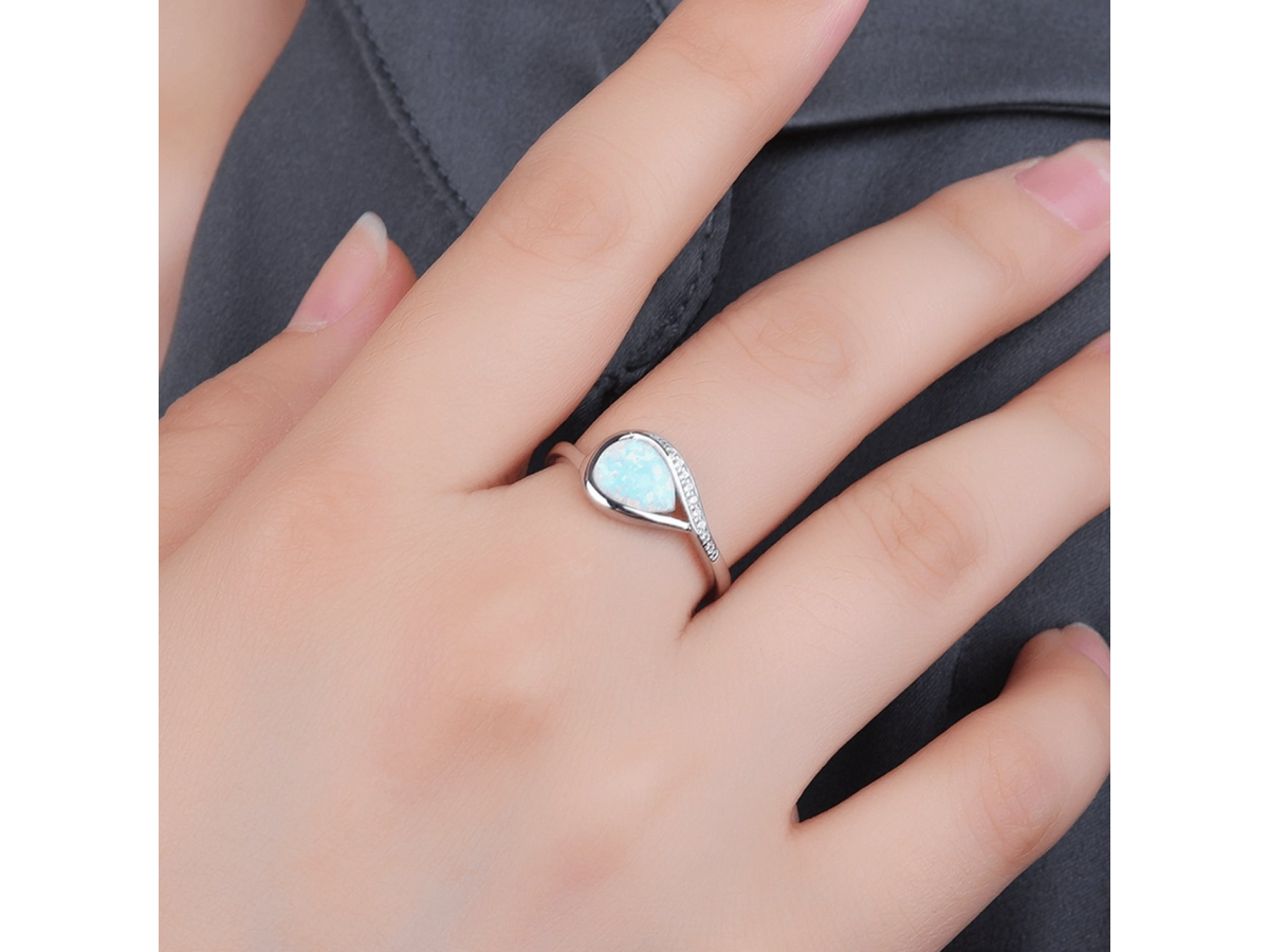Stříbrný prsten SLZA bílý OPÁL Ag 925/1000