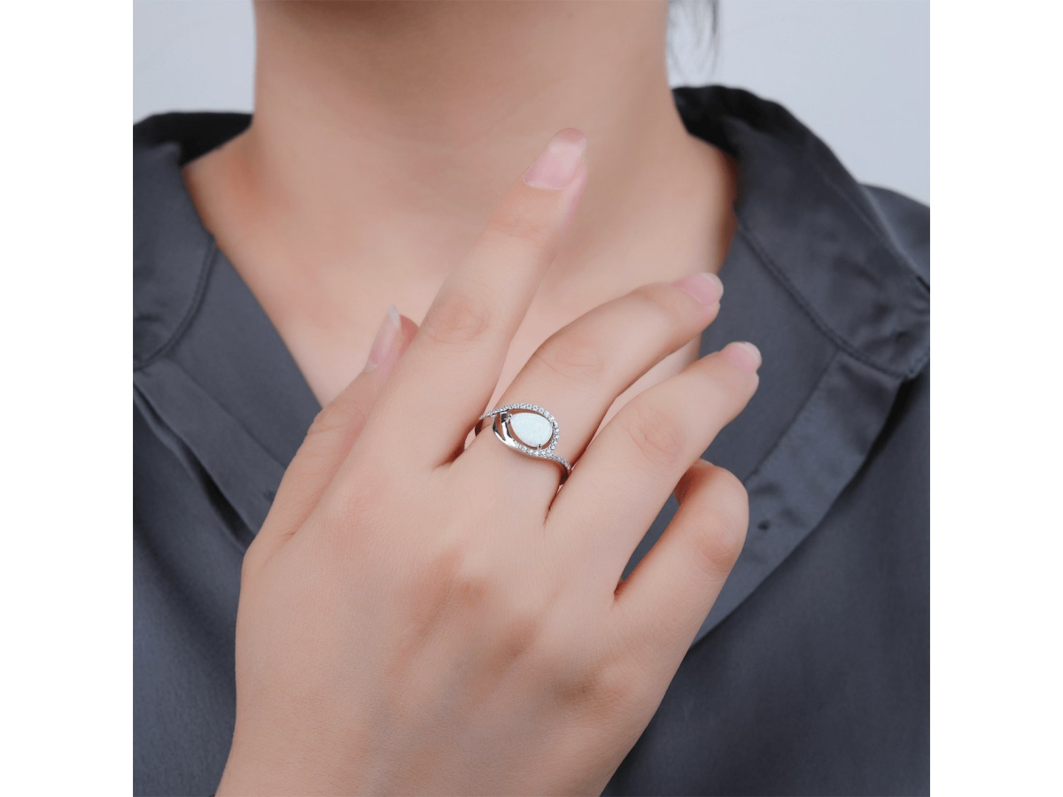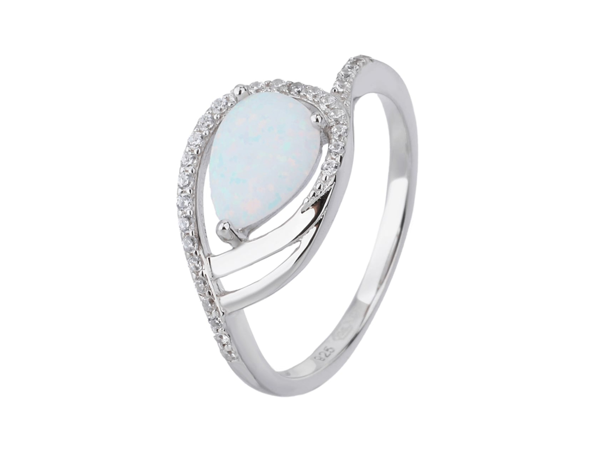 Stříbrný prsten SLZA bílý OPÁL Ag 925/1000