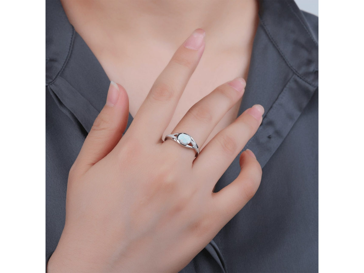 Stříbrný prsten SLZA bílý OPÁL Ag 925/1000