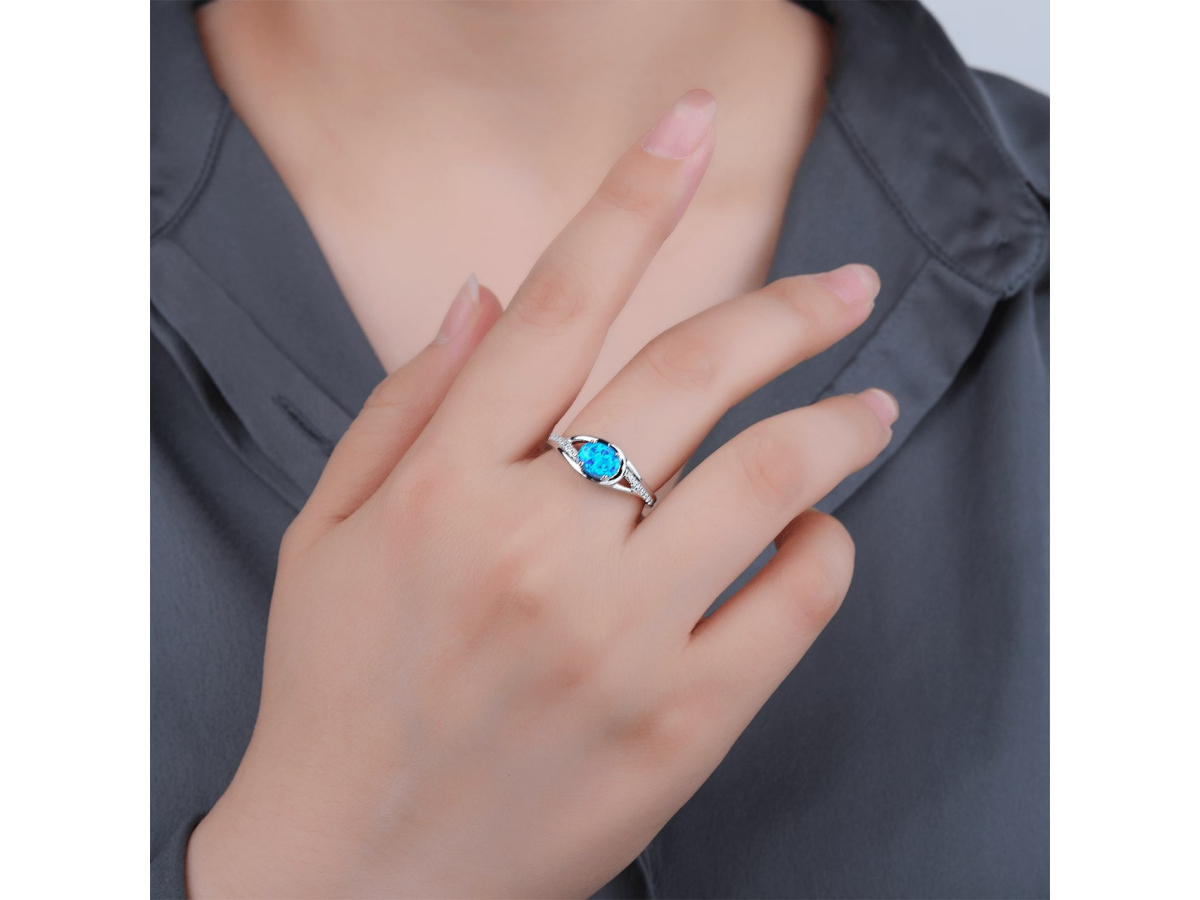 Stříbrný prsten SLZA modrý OPÁL Ag 925/1000