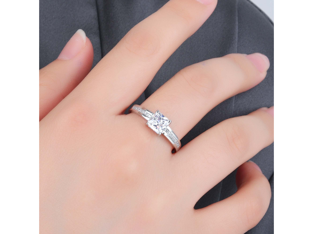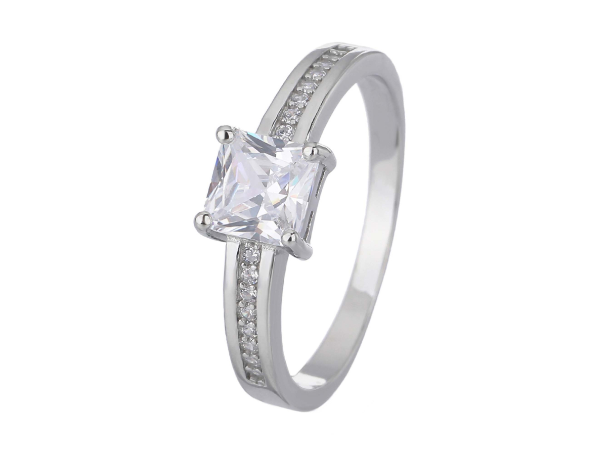 Stříbrný prsten SOLITÉR bílý hranatý Ag 925/1000