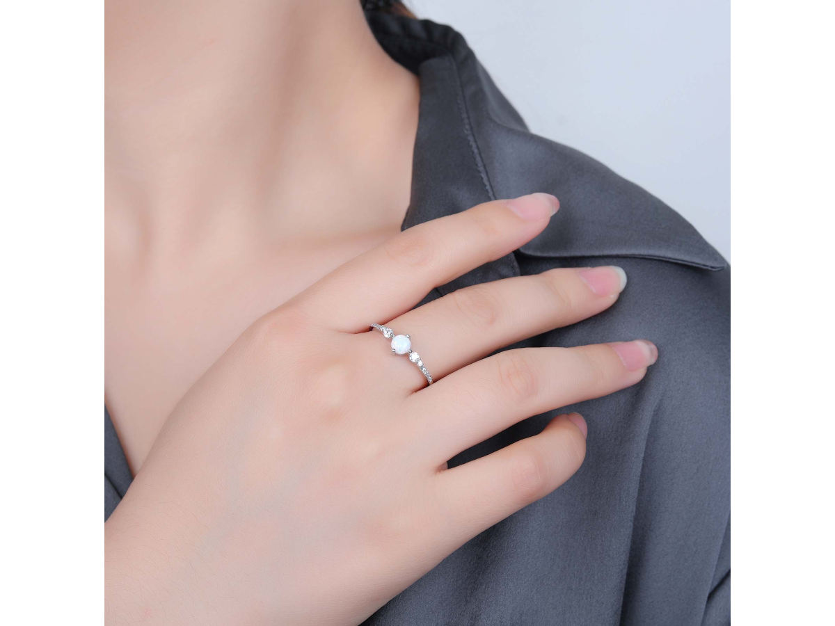Stříbrný prsten SOLITÉR bílý OPÁL Ag 925/1000