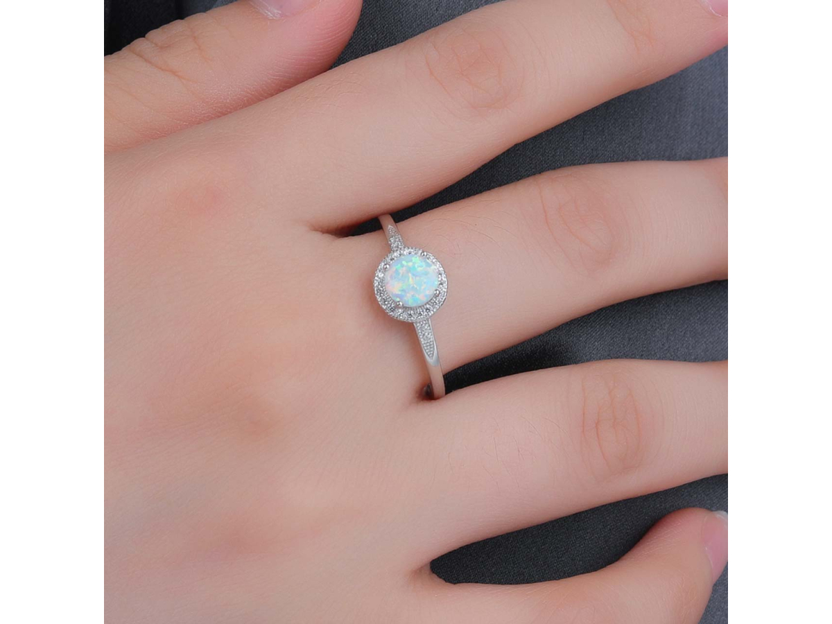 Stříbrný prsten SOLITÉR bílý OPÁL Ag 925/1000