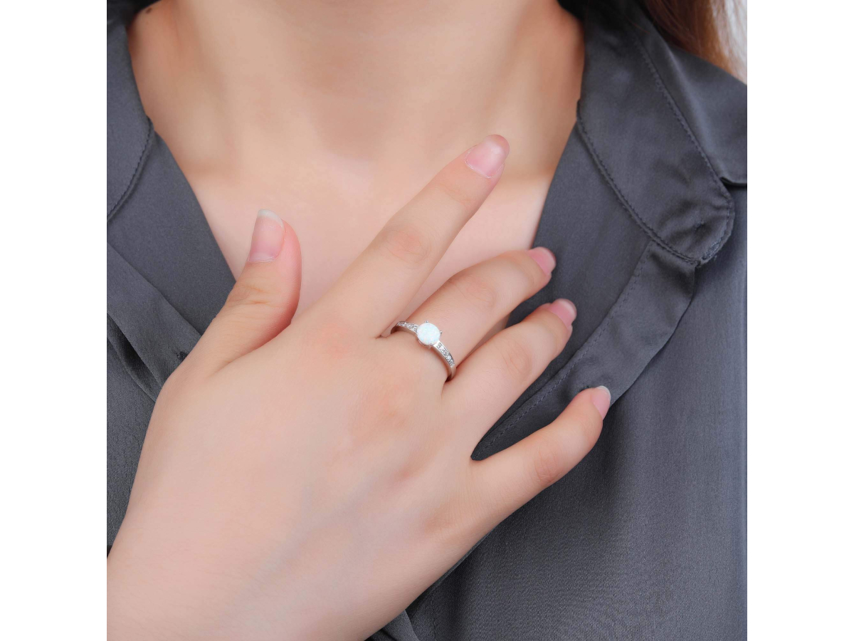 Stříbrný prsten SOLITÉR bílý OPÁL Ag 925/1000