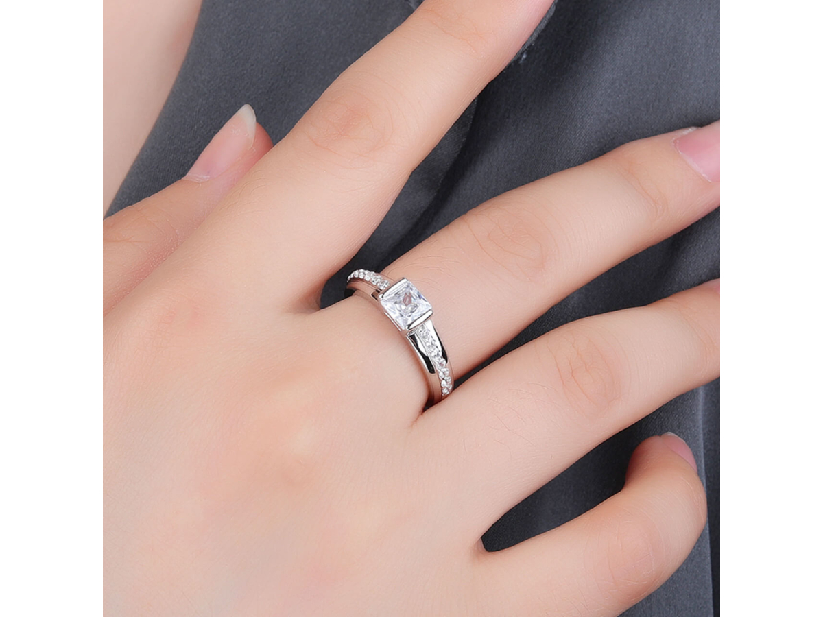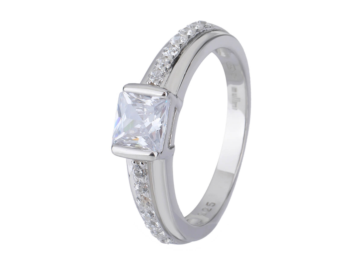 Stříbrný prsten SOLITÉR hranatý Ag 925/1000