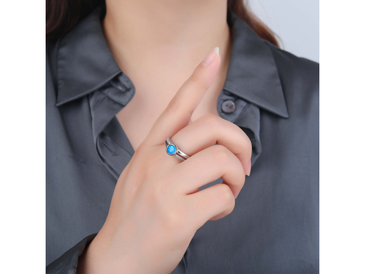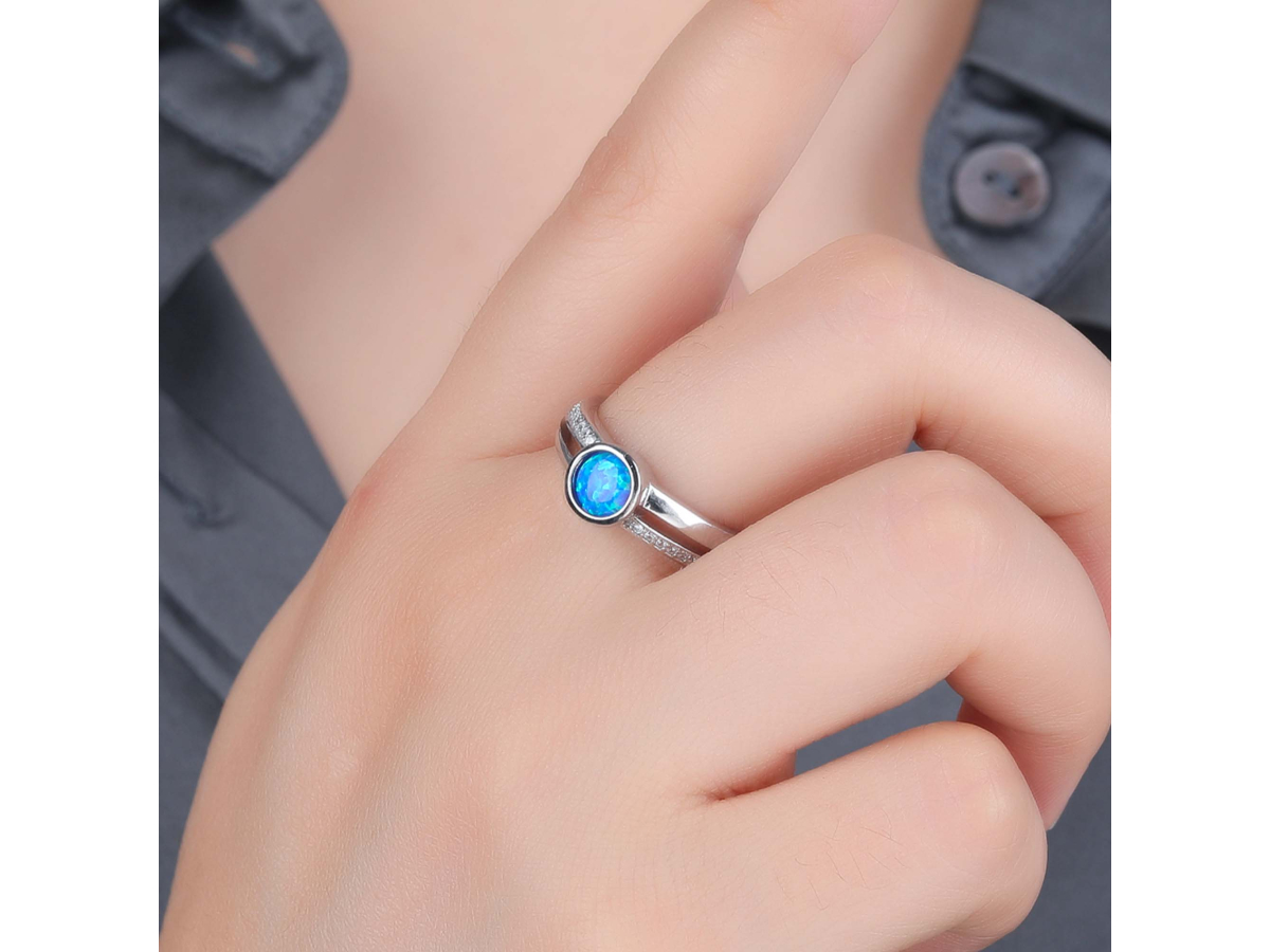 Stříbrný prsten SOLITÉR modrý OPÁL Ag 925/1000